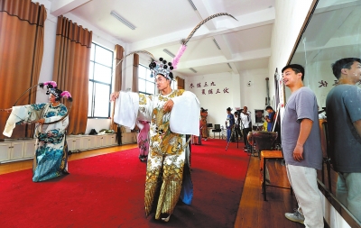 8月5日,内乡县宛梆艺术中心学员在老师的辅导下,认真排练。宛梆是生长并流行于我省南阳的地方戏,距今已有400多年的历史。