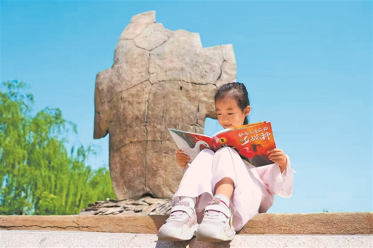 小学生正在阅读《和商王并肩的女战神》绘本。李庆超 摄