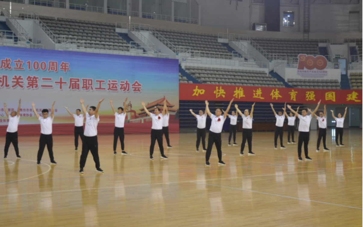 6月10日上午,在焦作市太极体育中心体育馆内,“庆祝中国共产党建党100周年·焦作市直机关第二十届职工运动会”广播体操比赛如期举行,焦作市人防办代表队以10.23分的优异成绩夺得了本届体操比赛第一名。
