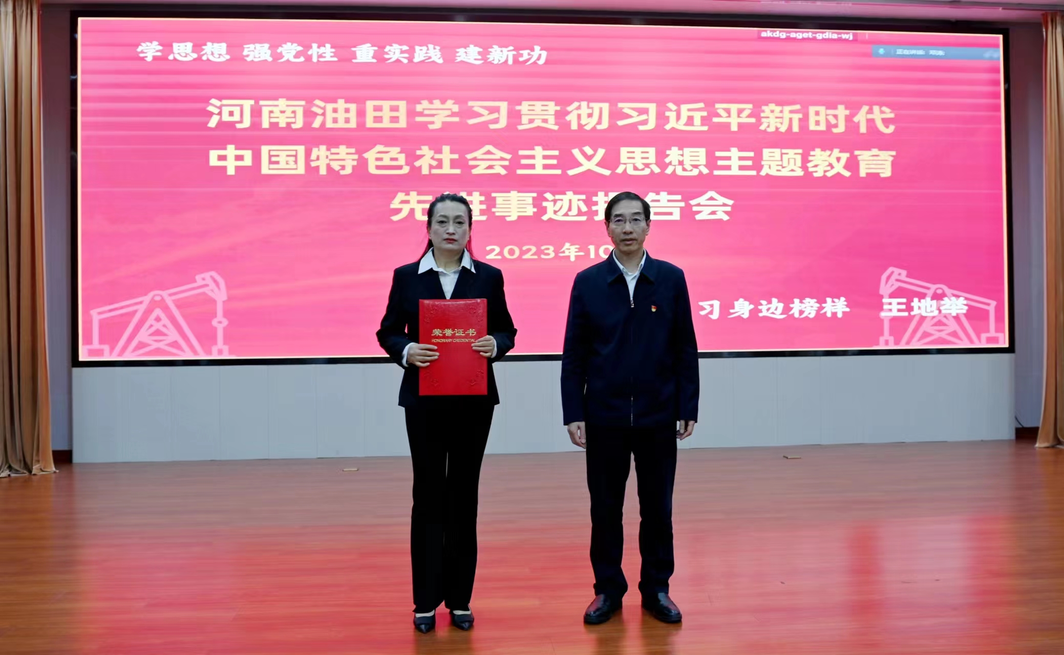10月13日,河南油田举行学习贯彻习近平新时代中国特色社会主义思想主题教育先进事迹报告会,学习宣传“河南油田优秀党员领导干部”王地举先进事迹,大力弘扬石油精神、石化传统,传递正能量。