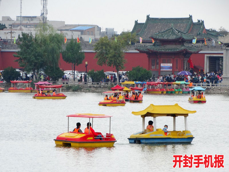 10月3日,古城开封市公园景点人头攒动,来自四面八方的游客络绎不绝。全媒体记者 李俊生 摄