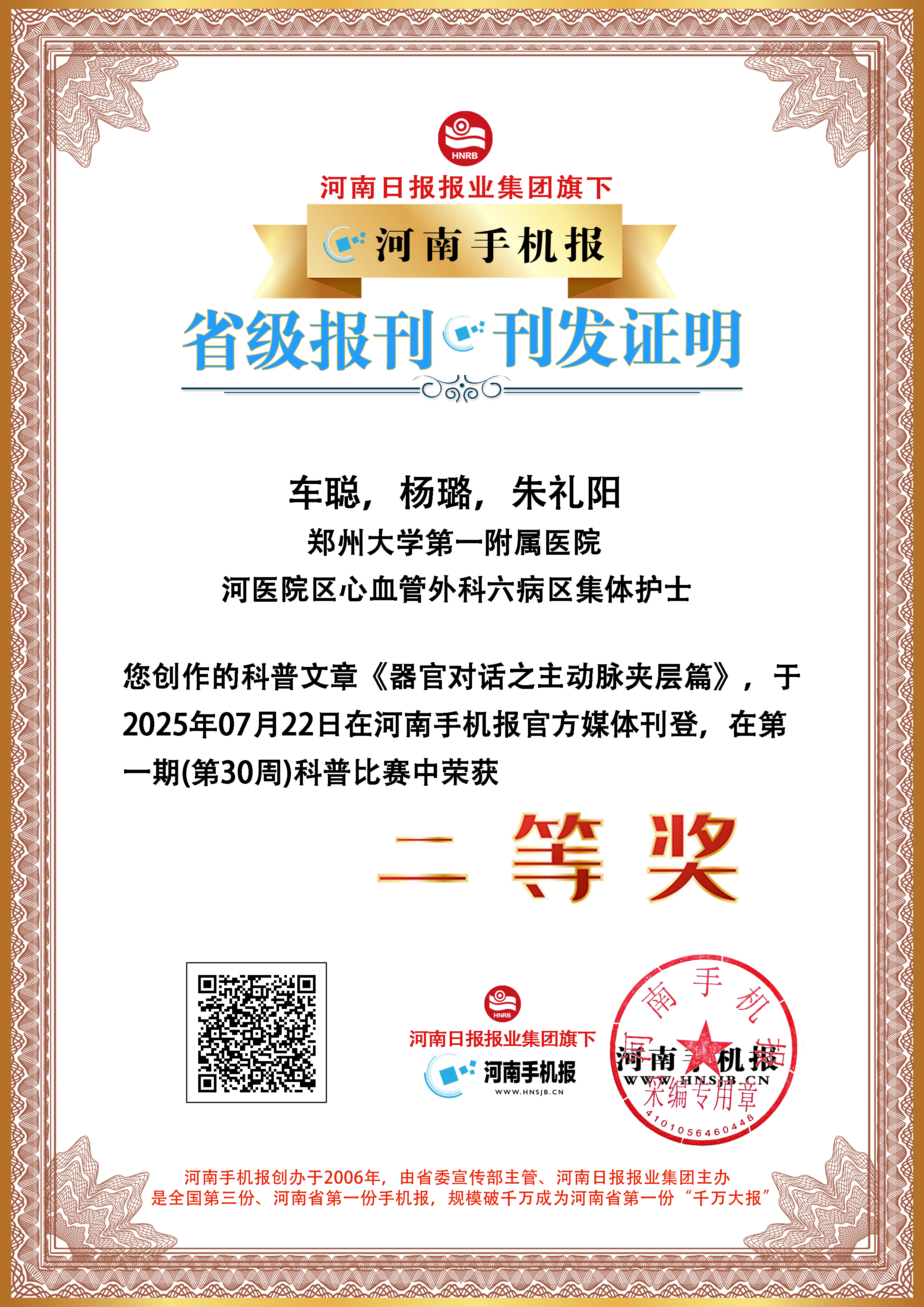 车聪,杨璐,朱礼阳 郑州大学第一附属医院 河医院区心血管外科六病区集体护士