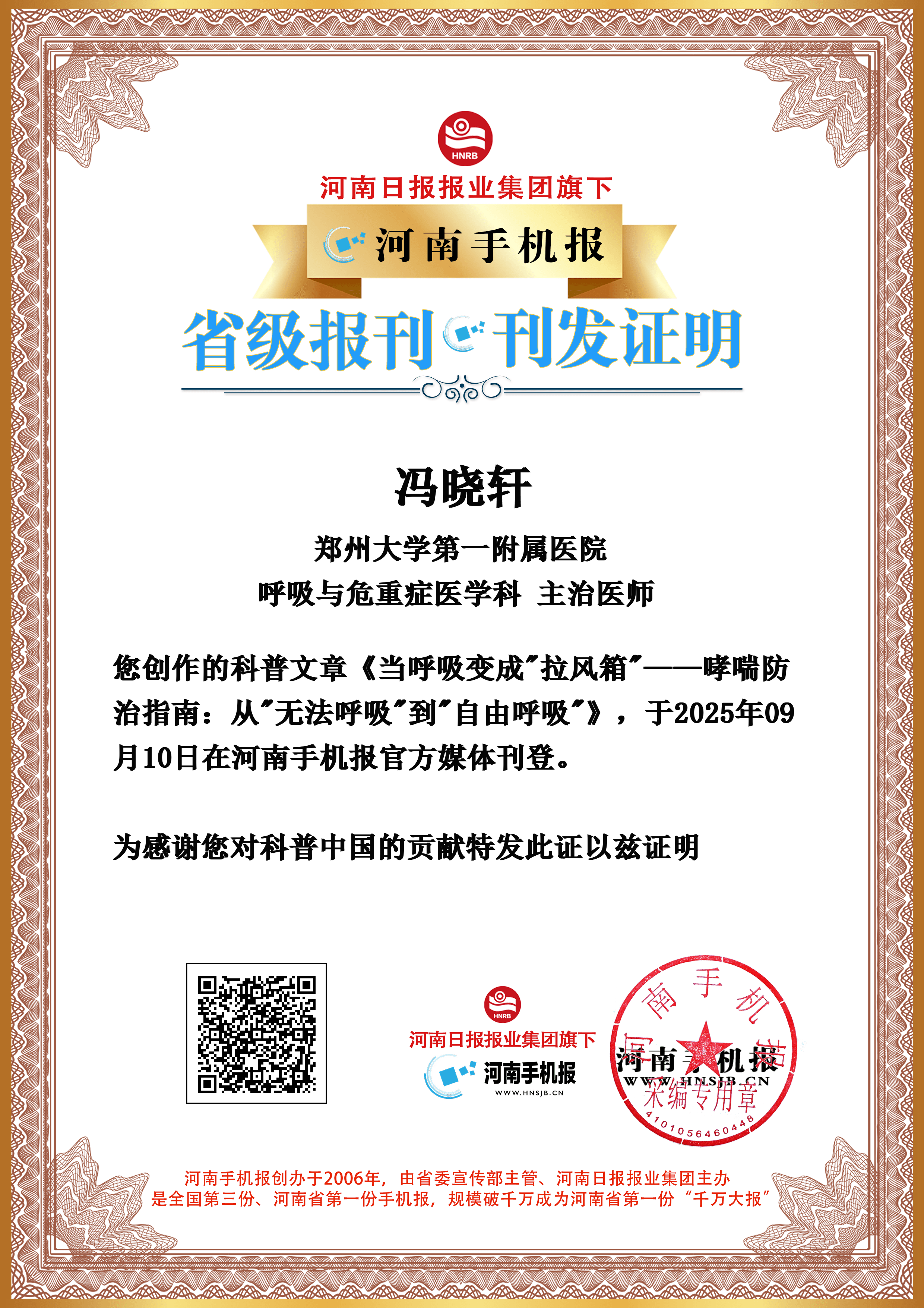 (冯晓轩 郑州大学第一附属医院 呼吸与危重症医学科 主治医师)