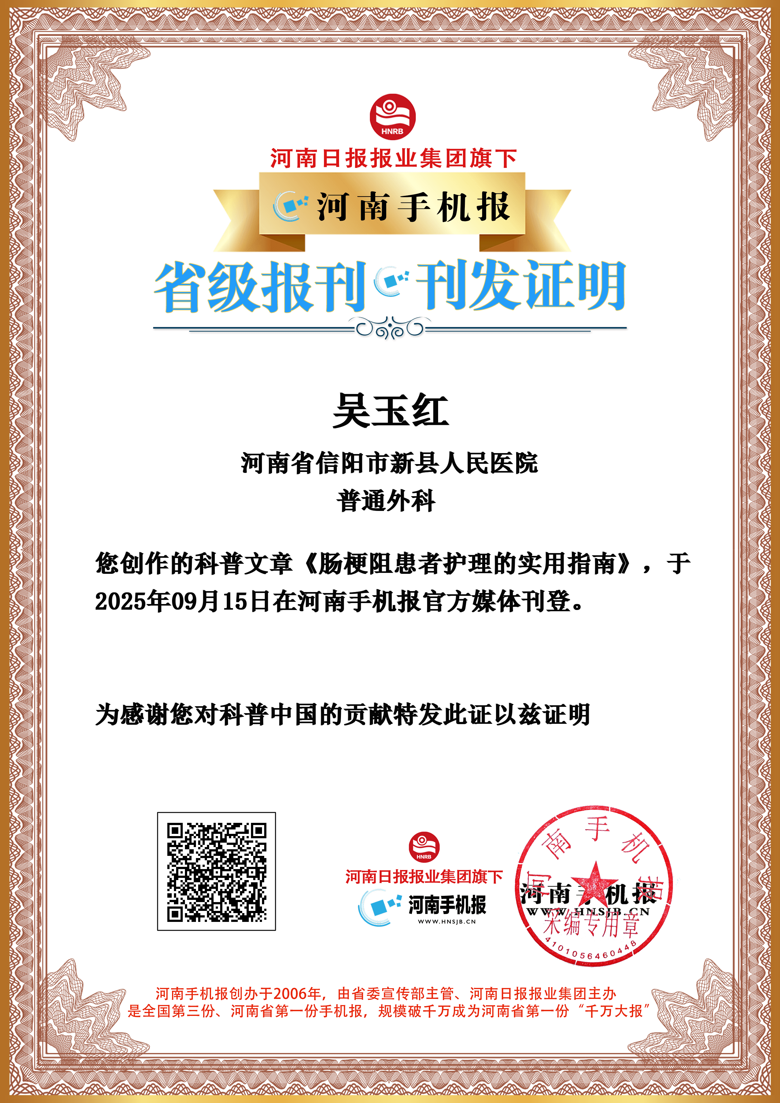 7. 监测与随访:住院期间护理人员需严密监测患者生命体征(体温、脉搏、呼吸、血压)、腹痛腹胀程度、呕吐物及引流液的颜色性质量、出入量平衡情况;定期复查血常规、电解质、腹部影像学检查,评估病情变化。出院后患者应遵医嘱定期门诊随访,术后1个月、3个月、6个月复查腹部超声或CT,监测肠道功能恢复情况。居家期间家属需密切观察患者有无腹痛复发、排便异常、体重下降等预警信号,一旦出现及时与主治医生沟通。