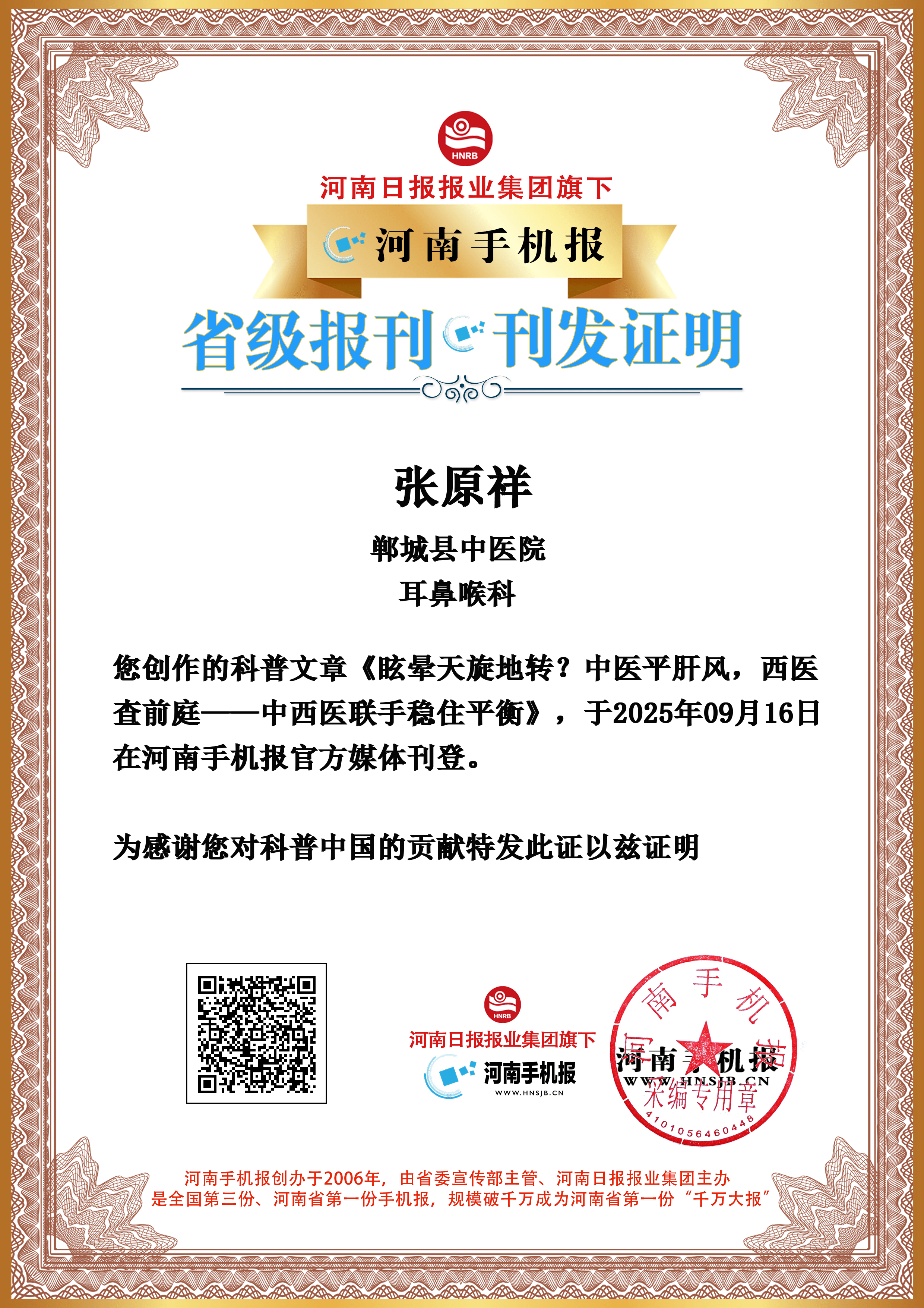 张原祥:眩晕天旋地转?中医平肝风,西医查前庭——中西医联手稳住平衡