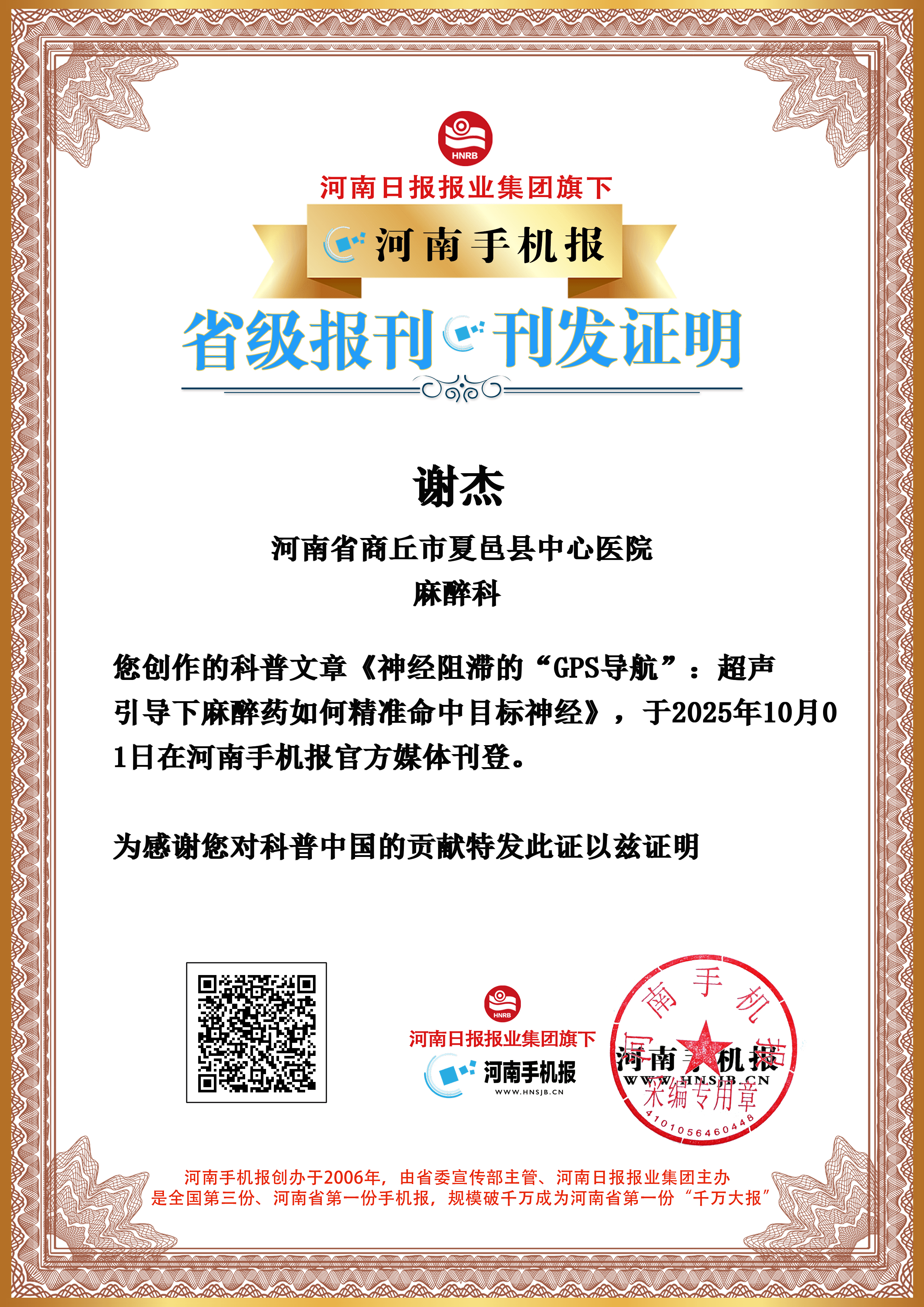 谢杰:神经阻滞的“GPS导航”:超声引导下麻醉药如何精准命中目标神经