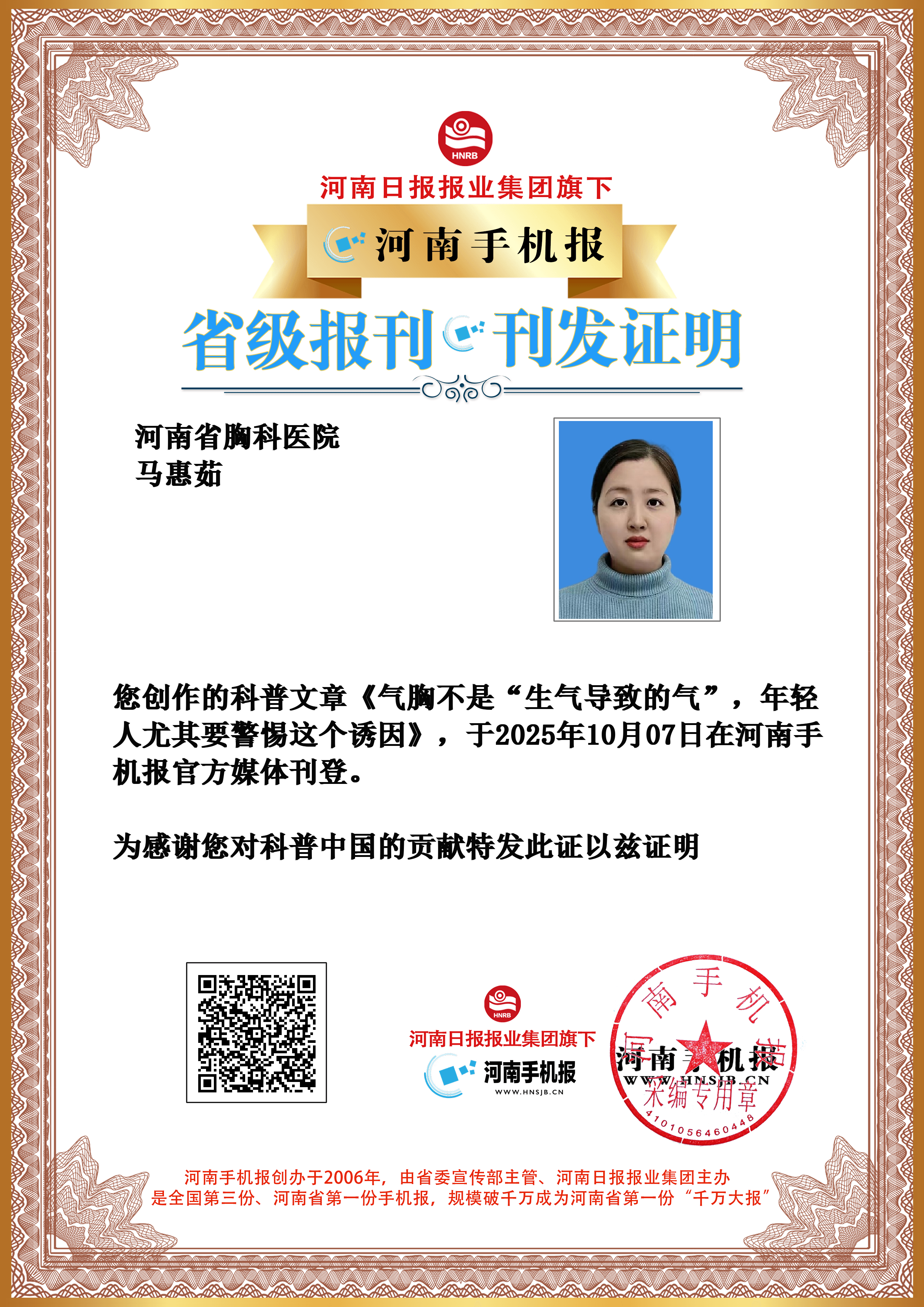 马惠茹:气胸不是“生气导致的气”,年轻人尤其要警惕这个诱因