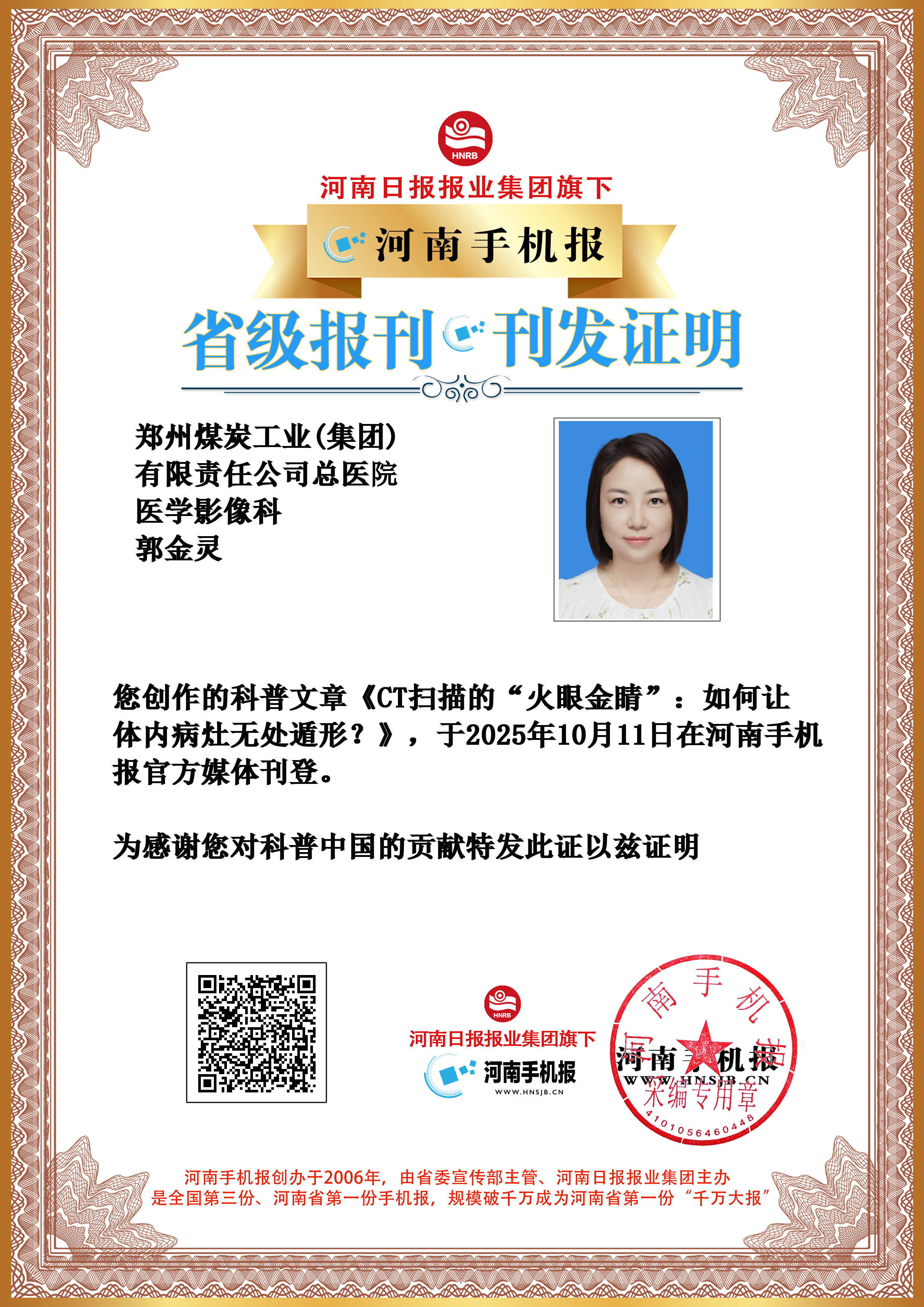 (郭金灵 郑州煤炭工业(集团)有限责任公司总医院 医学影像科)