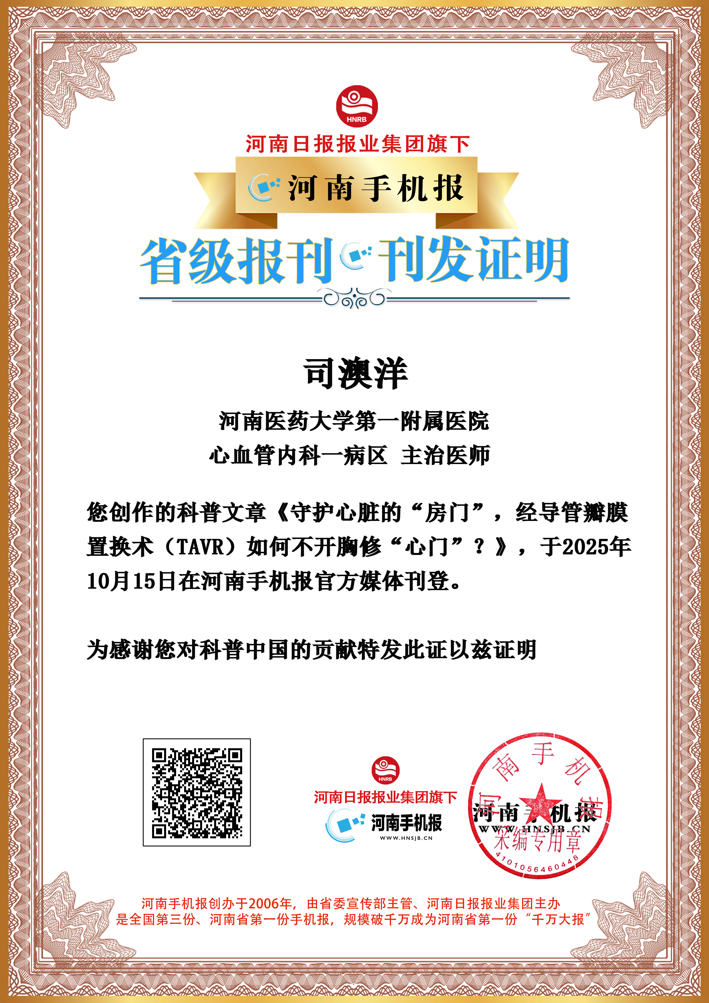 (司澳洋 河南医药大学第一附属医院 心血管内科一病区 主治医师)