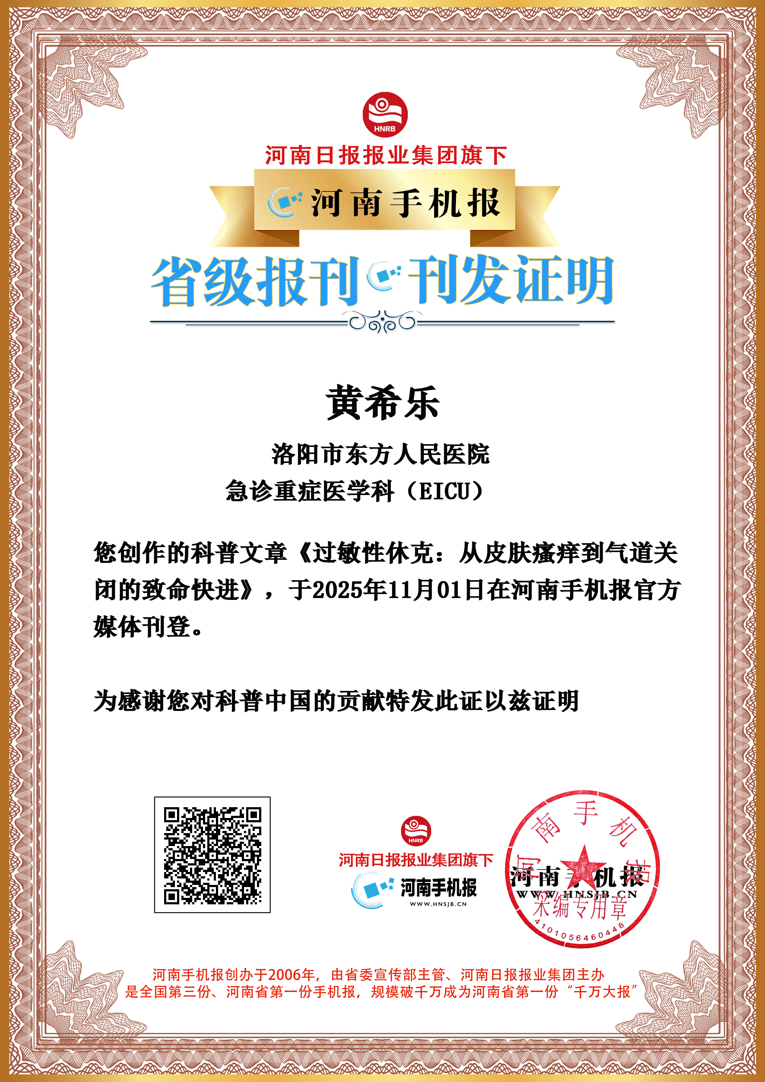 黄希乐:过敏性休克:从皮肤瘙痒到气道关闭的致命快进