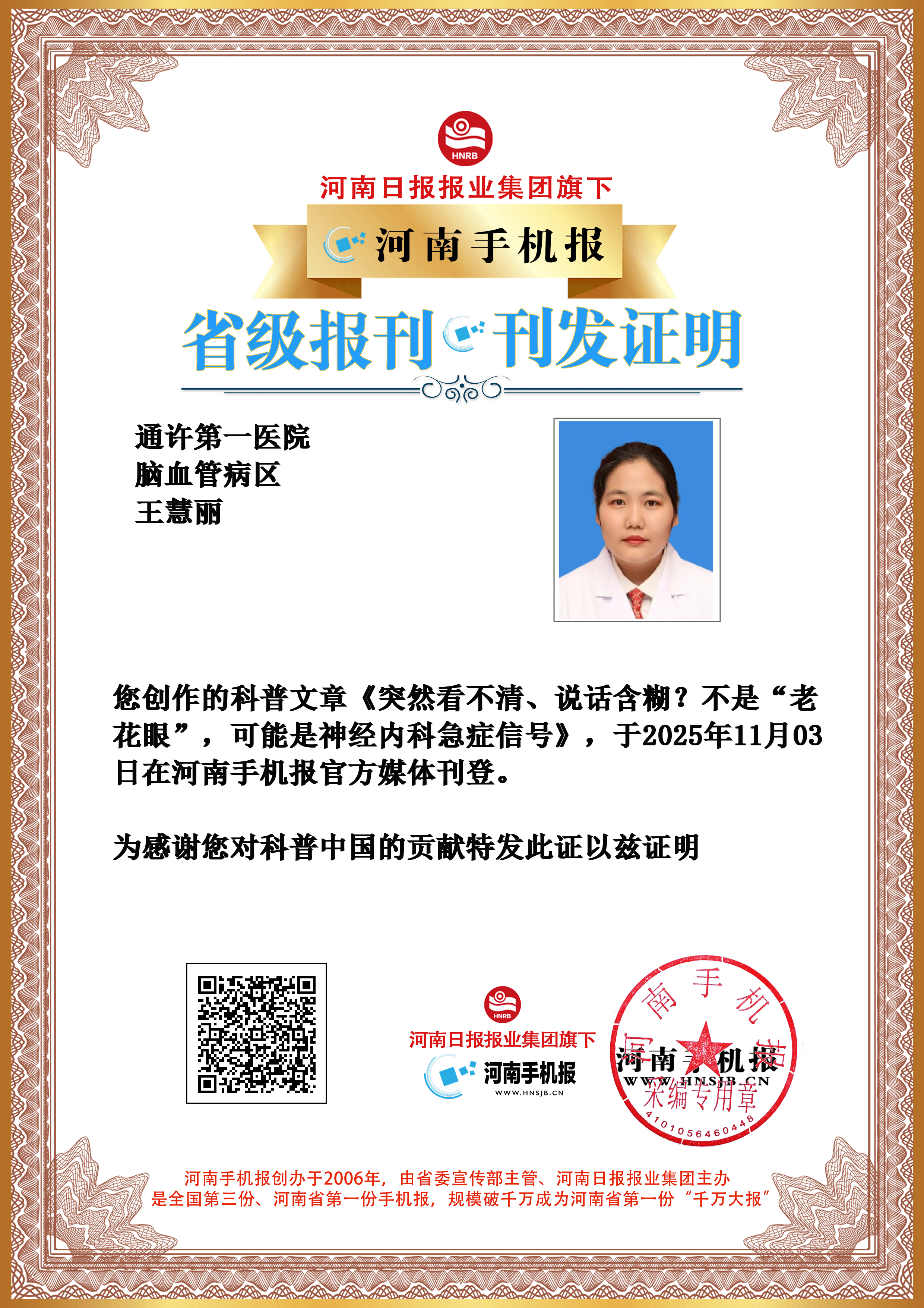 王慧丽:突然看不清、说话含糊?不是“老花眼”,可能是神经内科急症信号