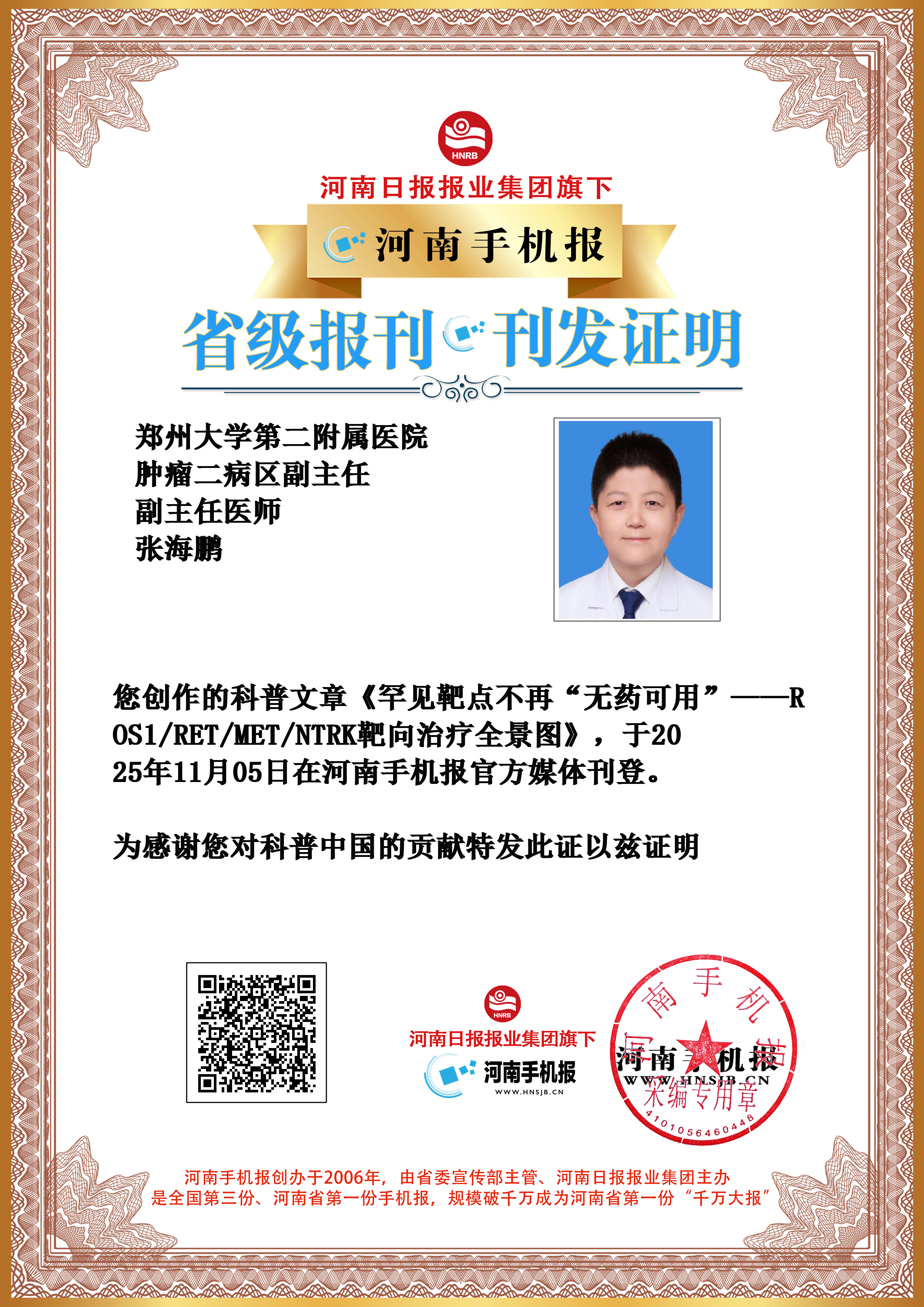 (张海鹏 郑州大学第二附属医院 肿瘤二病区副主任 副主任医师)