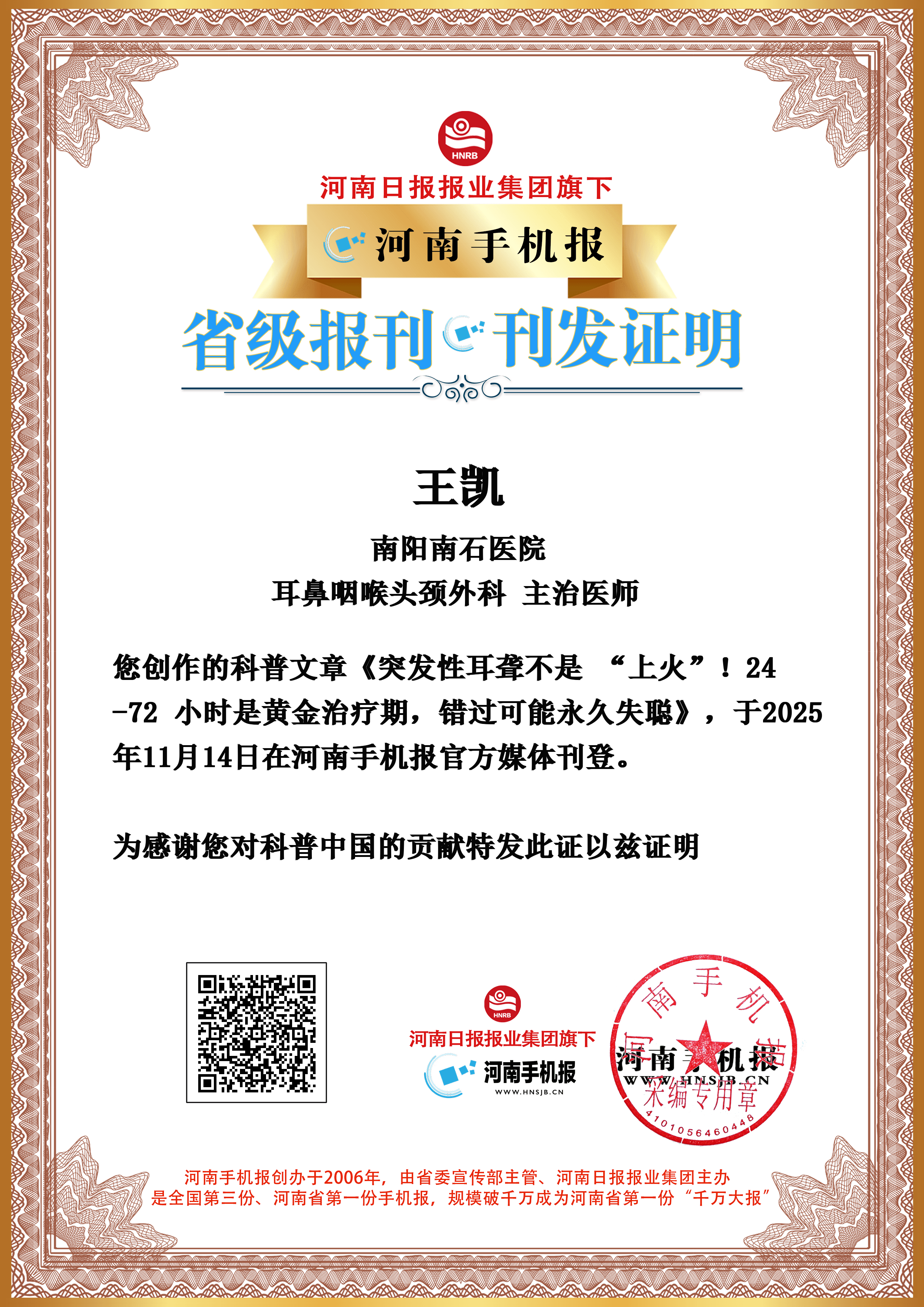 王凯:突发性耳聋不是 “上火”!24-72 小时是黄金治疗期,错过可能永久失聪