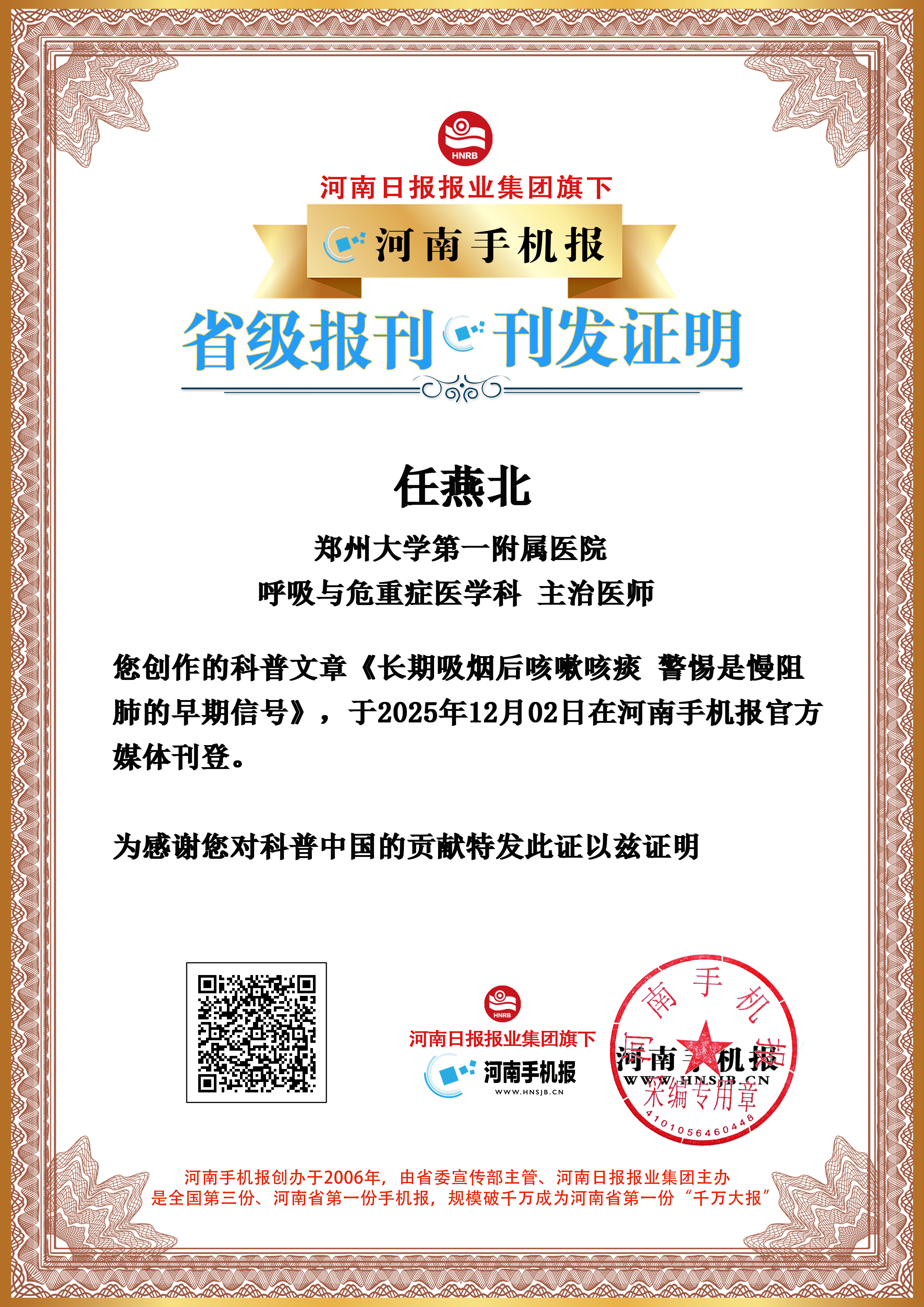 (任燕北 郑州大学第一附属医院 呼吸与危重症医学科 主治医师)