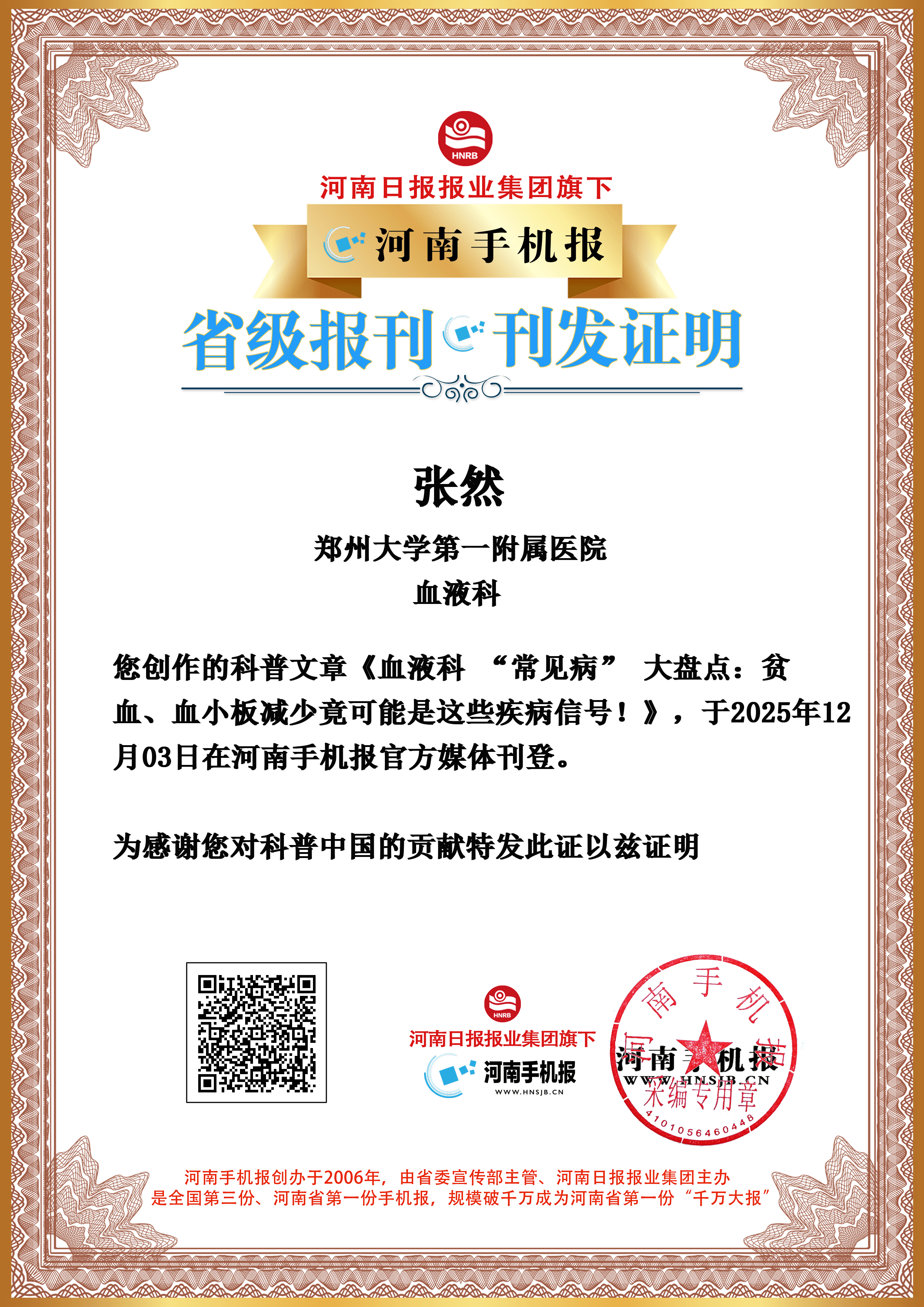 张然:血液科 “常见病” 大盘点:贫血、血小板减少竟可能是这些疾病信号!