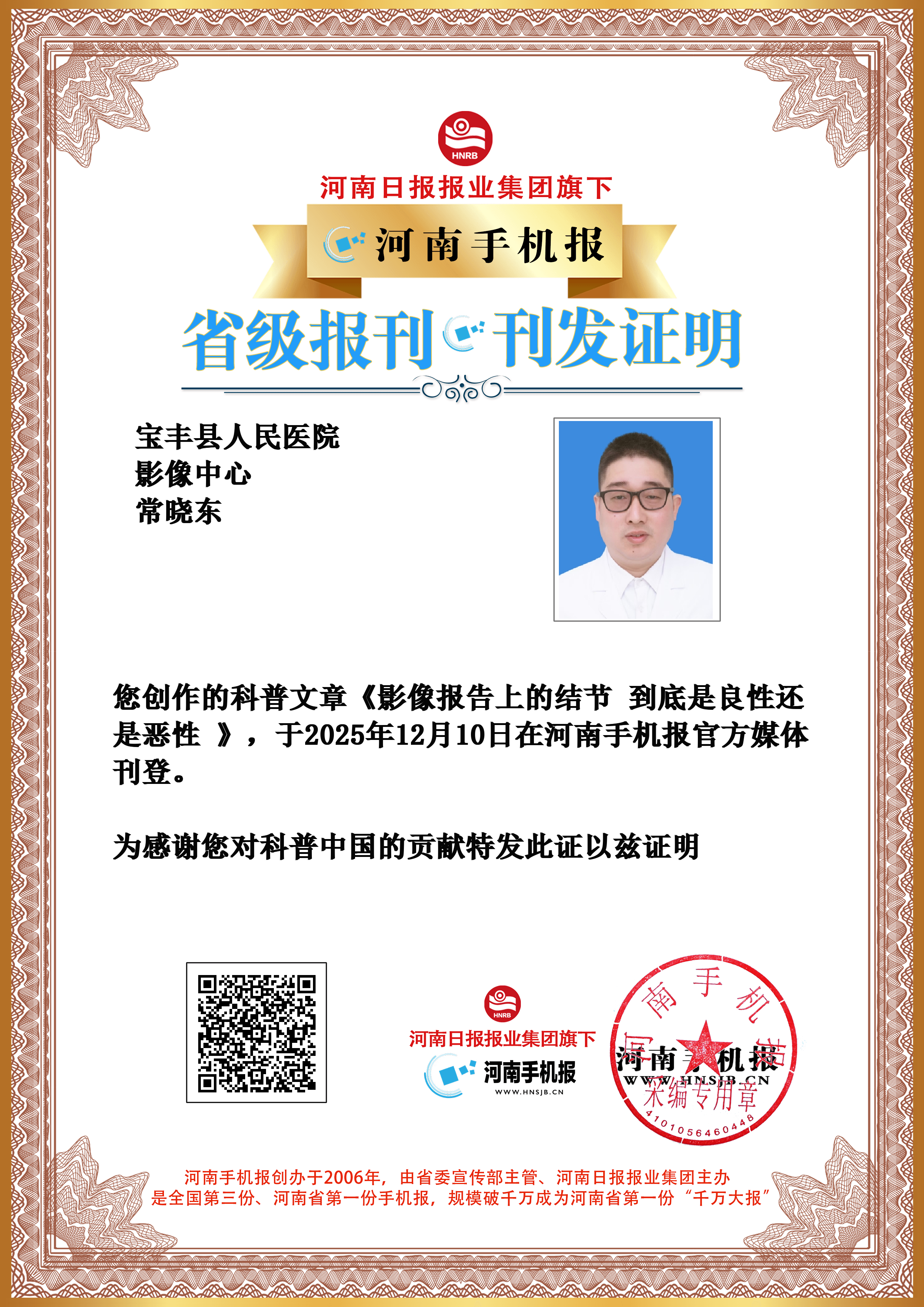 结节只是影像检查中的“小异常”,并非癌症的代名词,无需过度恐慌,但也不能掉以轻心。正确的做法是科学解读报告、重视专科评估、规范随访治疗,既不忽视潜在风险,也不盲目过度干预。若拿到包含结节的影像报告,建议及时咨询对应科室医生,明确结节性质与应对方案,才能最大程度保障身体健康。(