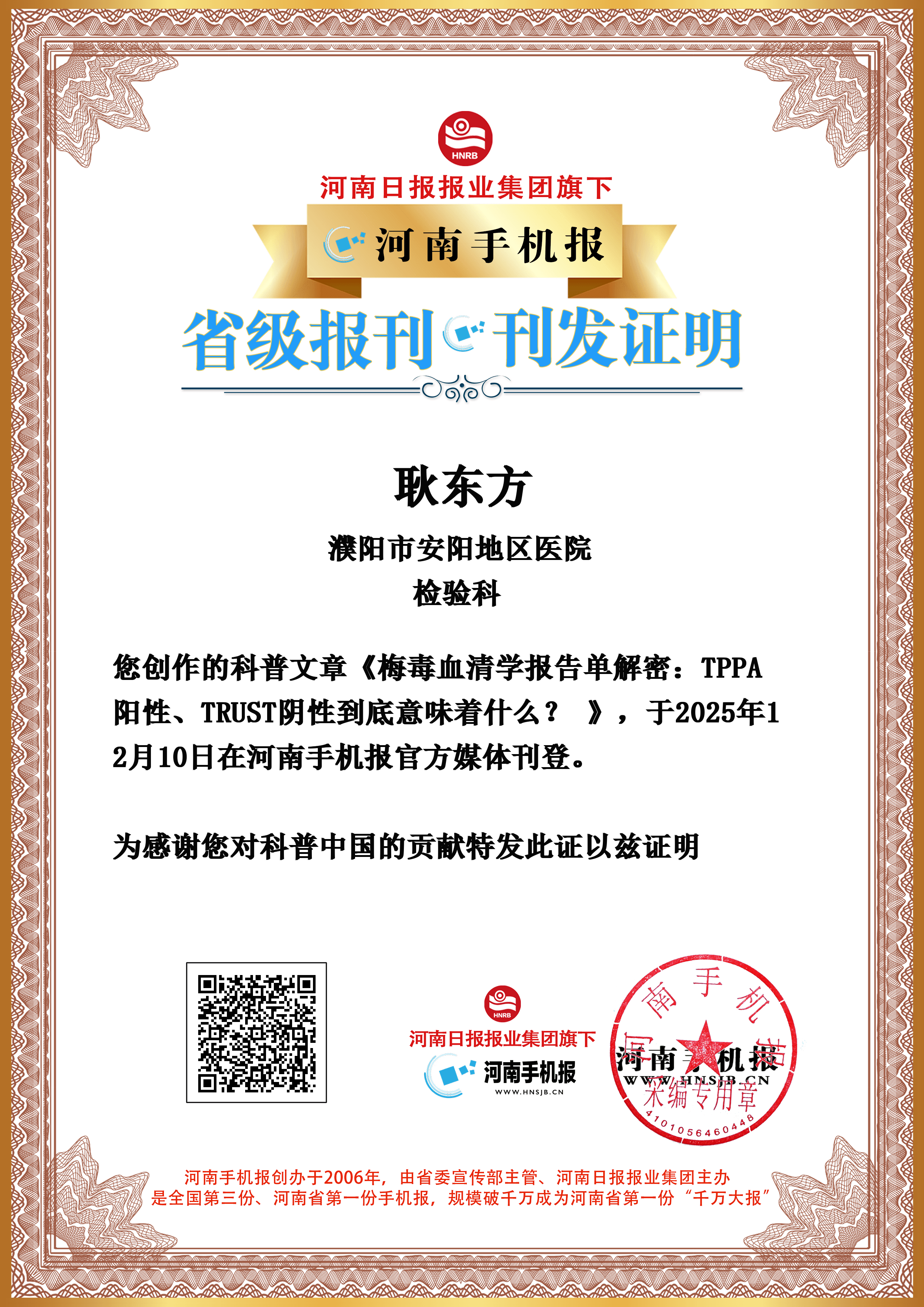 耿东方:梅毒血清学报告单解密:TPPA阳性、TRUST阴性到底意味着什么?