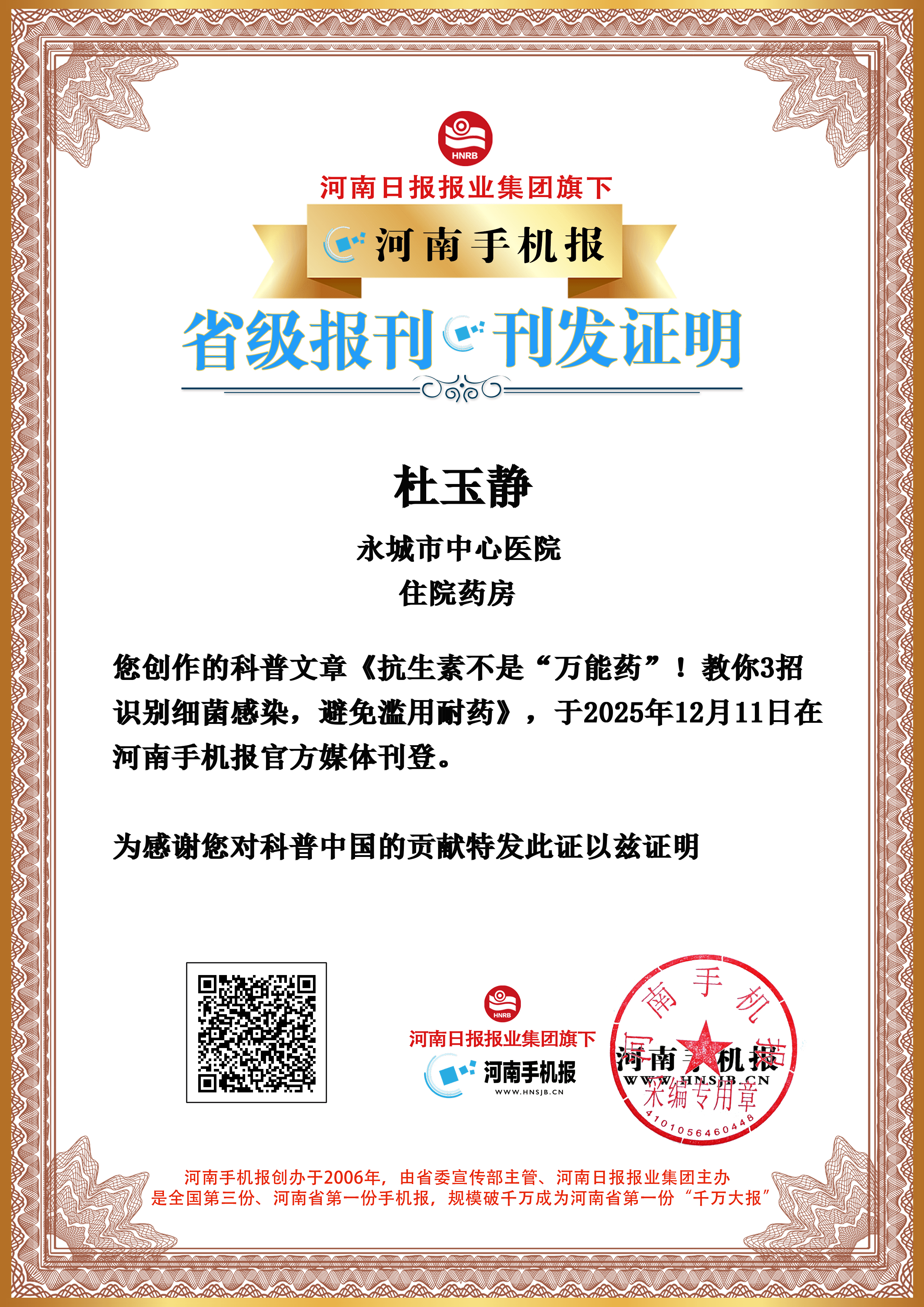 抗生素的发明是医学史上的重大突破,挽救了无数人的生命,但滥用抗生素却在亲手摧毁这一“生命防线”。识别细菌感染的3招——看症状特点、查血常规指标、观病程发展,能帮助我们建立科学的判断意识,避免盲目使用抗生素。每个人都是对抗细菌耐药性的参与者,只有树立正确的用药观念,合理使用抗生素,才能守护好我们的健康防线,让抗生素在关键时刻发挥应有的作用。