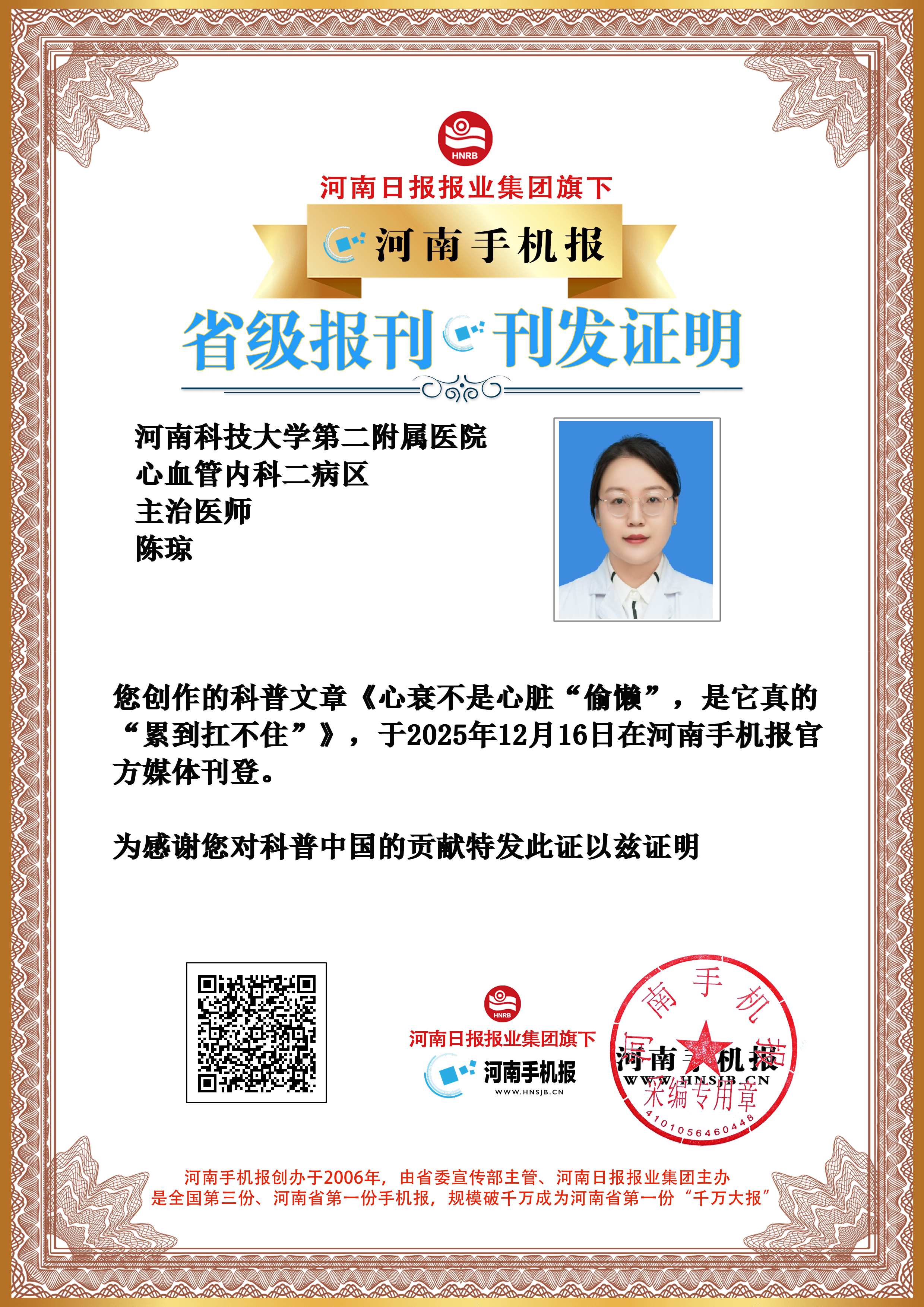 (陈琼 河南科技大学第二附属医院 心血管内科二病区 主治医师)