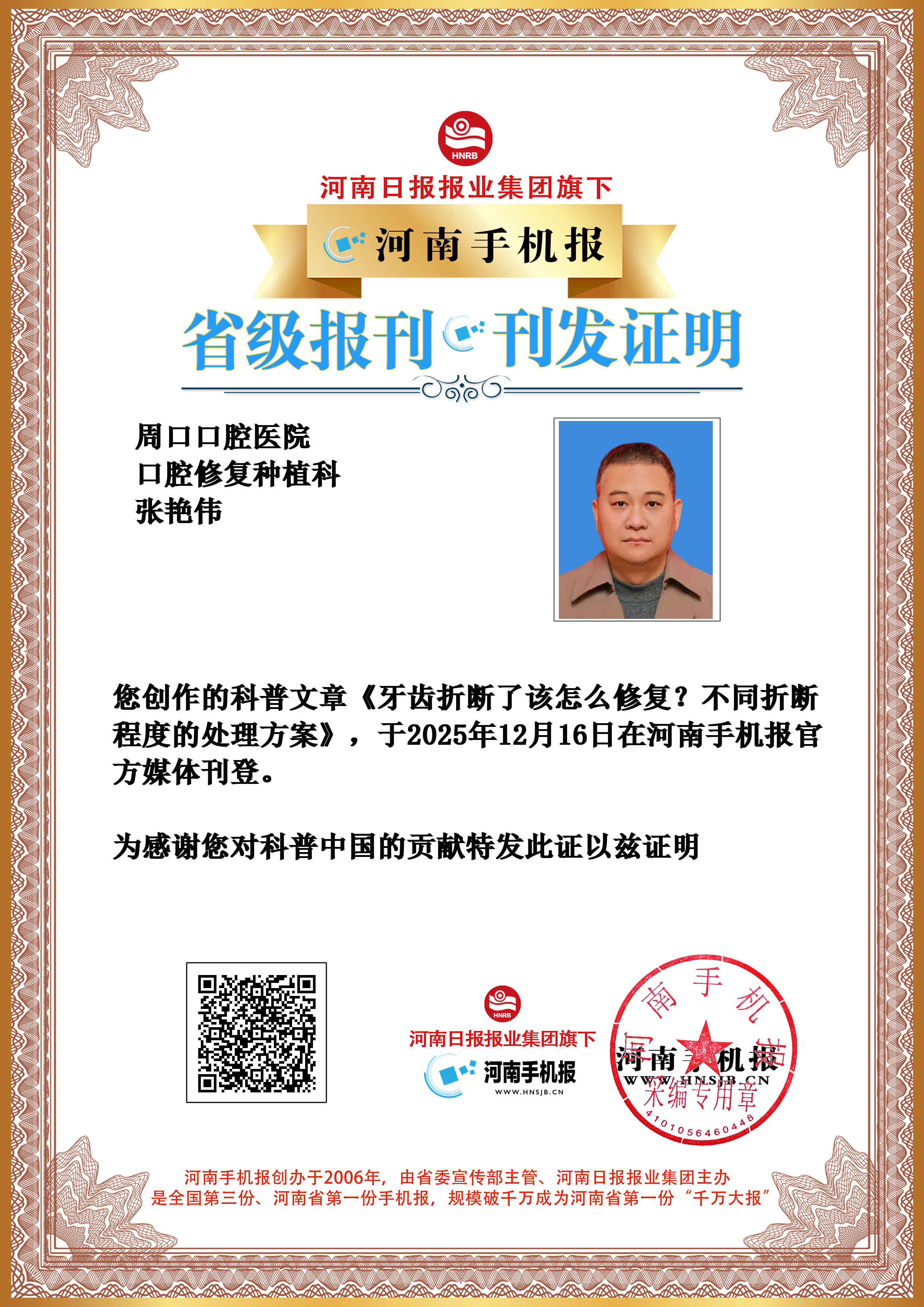 张艳伟:牙齿折断了该怎么修复?不同折断程度的处理方案