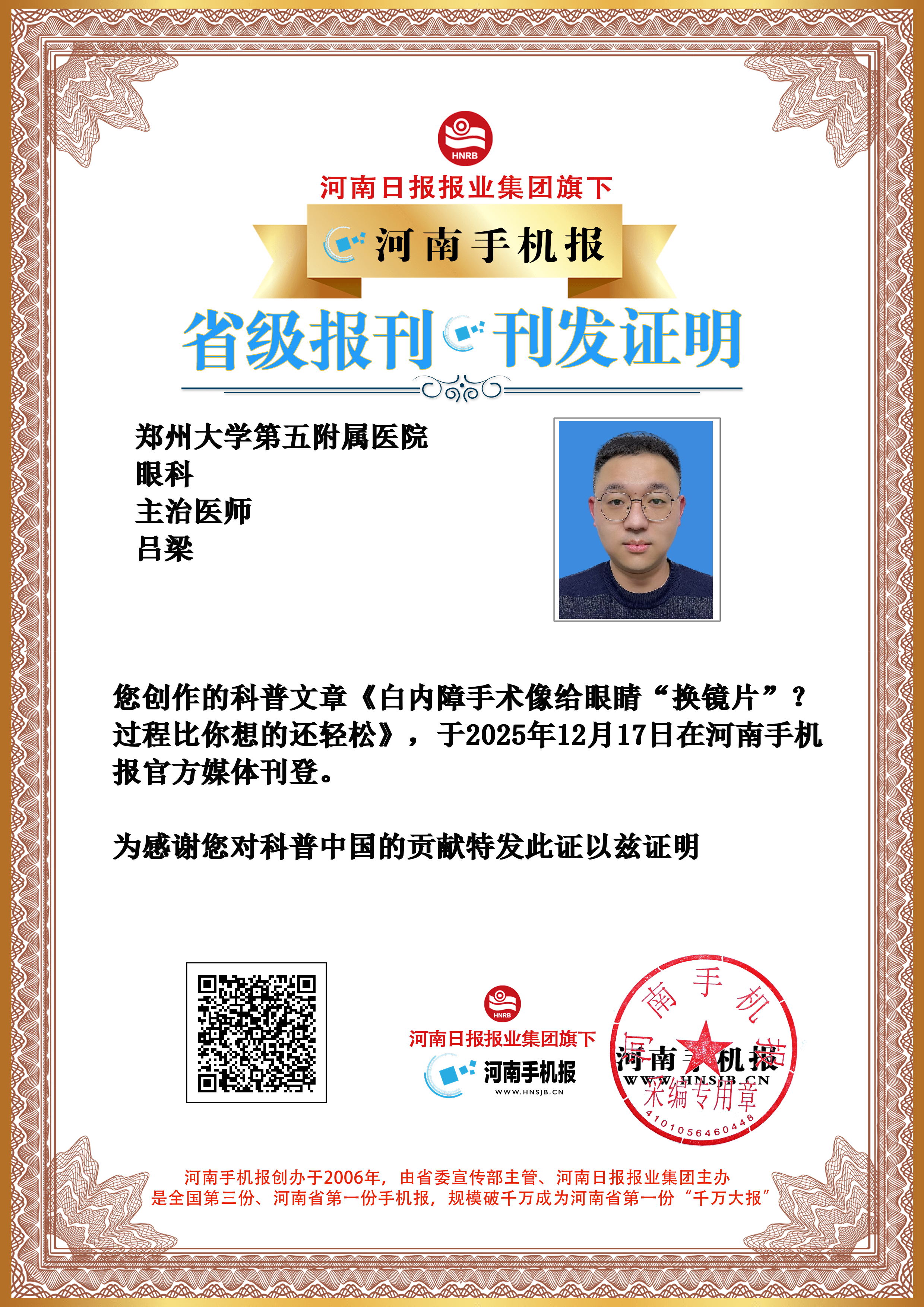特别声明:本文内容由河南手机报投稿作者发布,仅代表作者个人观点,河南手机报仅提供发布平台。如内容涉及侵权或其他问题,请联系删除!本栏目工作人员不会主动以任何形式联系作者,请各位作者提高警惕、注意甄别,若遇可疑人员请及时拉黑并向我们反馈,避免财产损失。