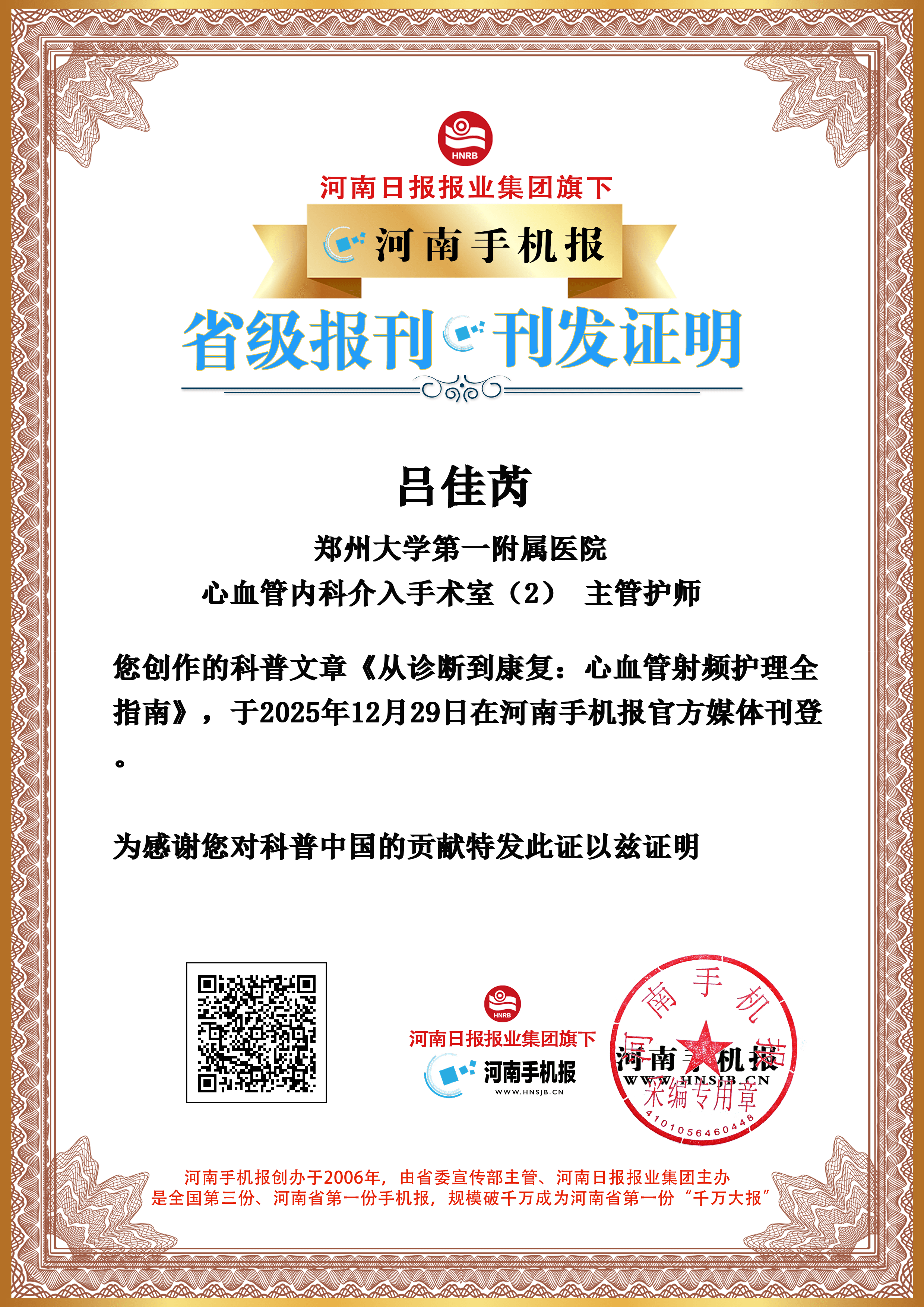 (吕佳芮 郑州大学第一附属医院 心血管内科介入手术室(2) 主管护师)