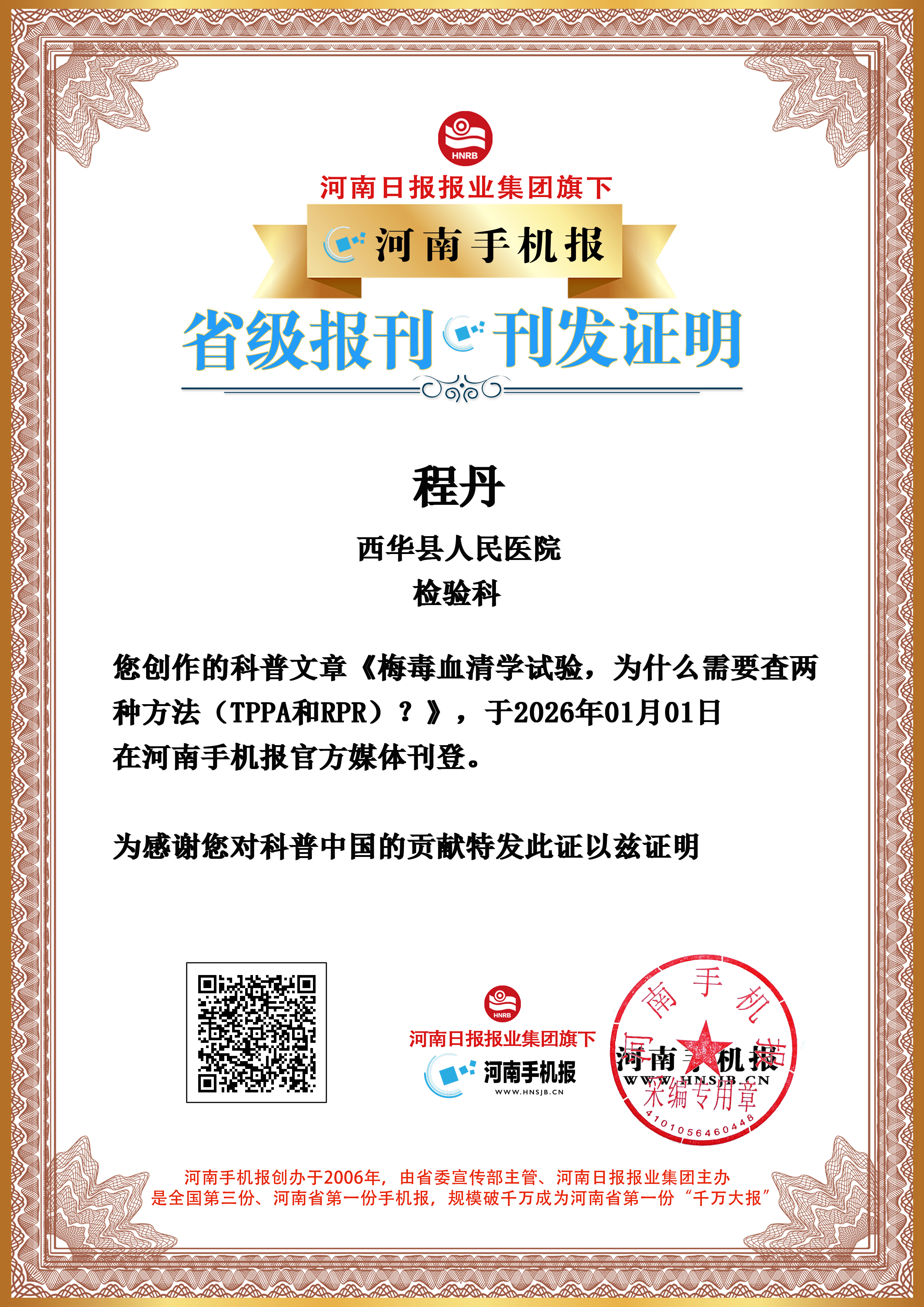 程丹:梅毒血清学试验,为什么需要查两种方法(TPPA和RPR)?