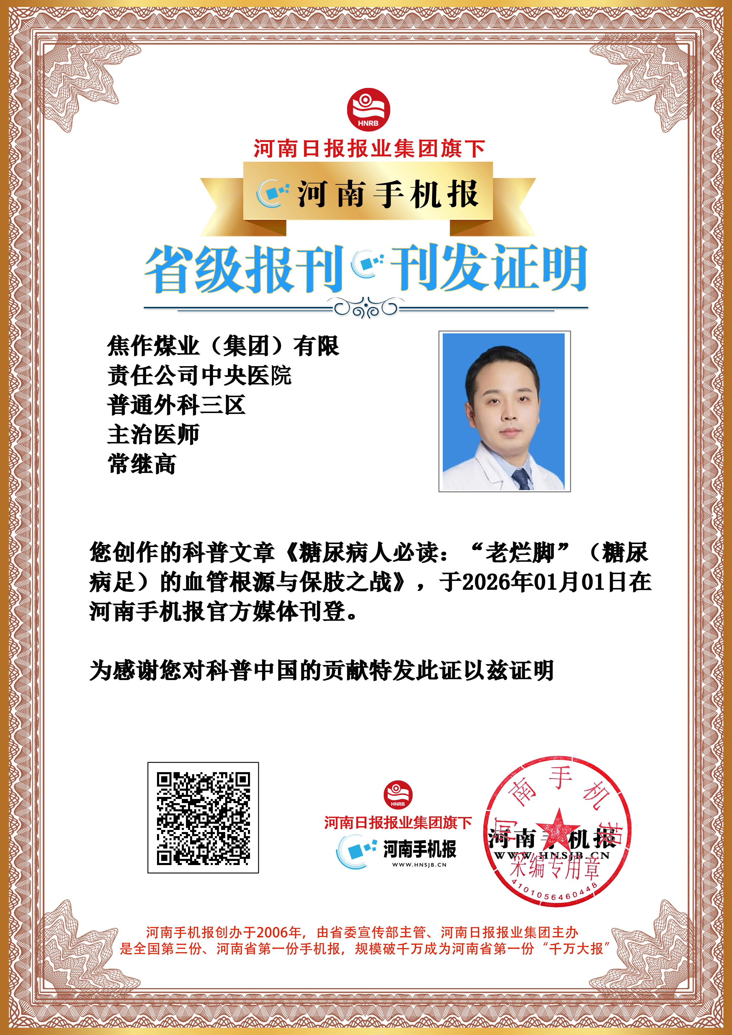 (常继高 焦作煤业(集团)有限责任公司中央医院 普通外科三区 主治医师)