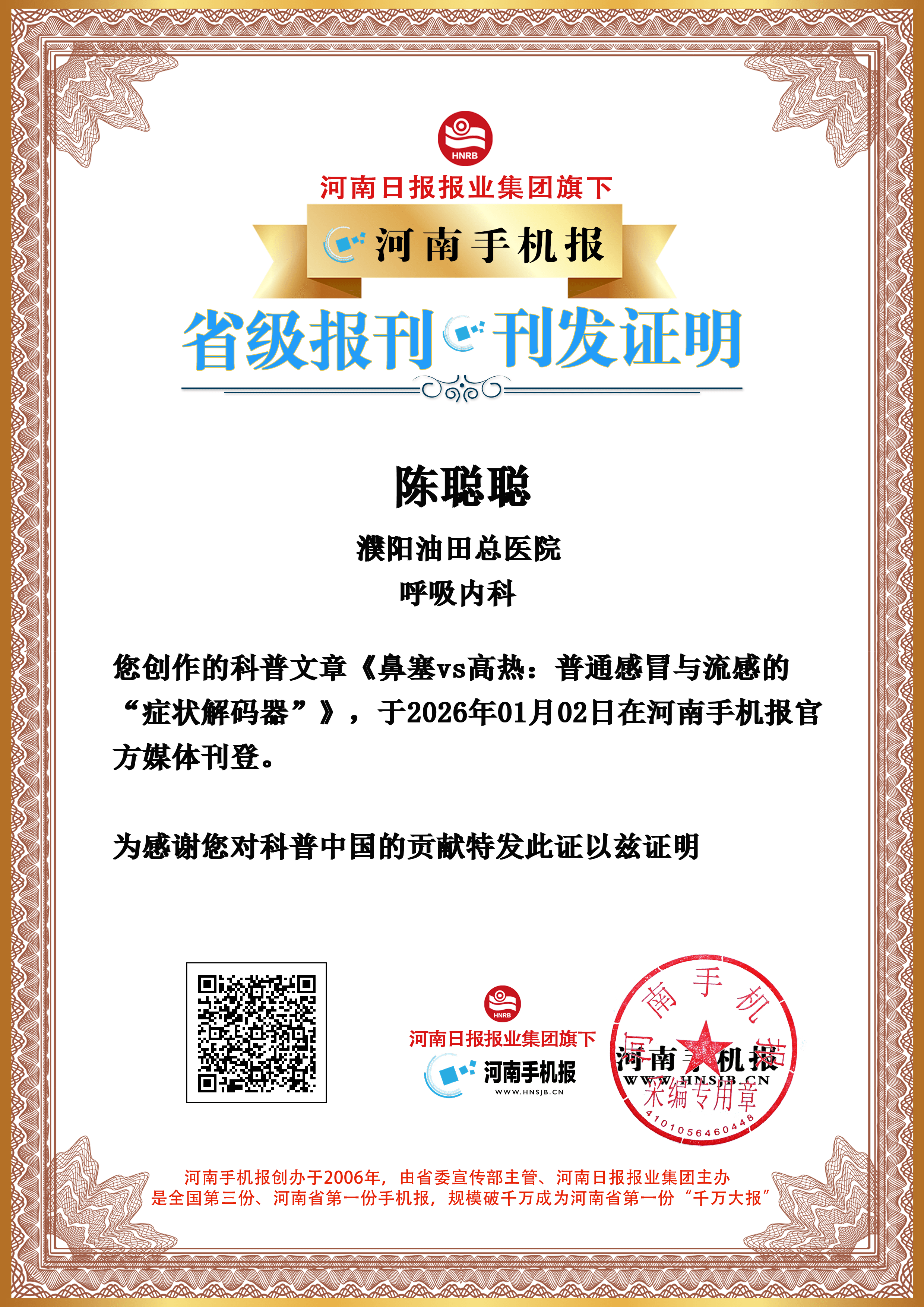 陈聪聪:鼻塞vs高热:普通感冒与流感的“症状解码器”