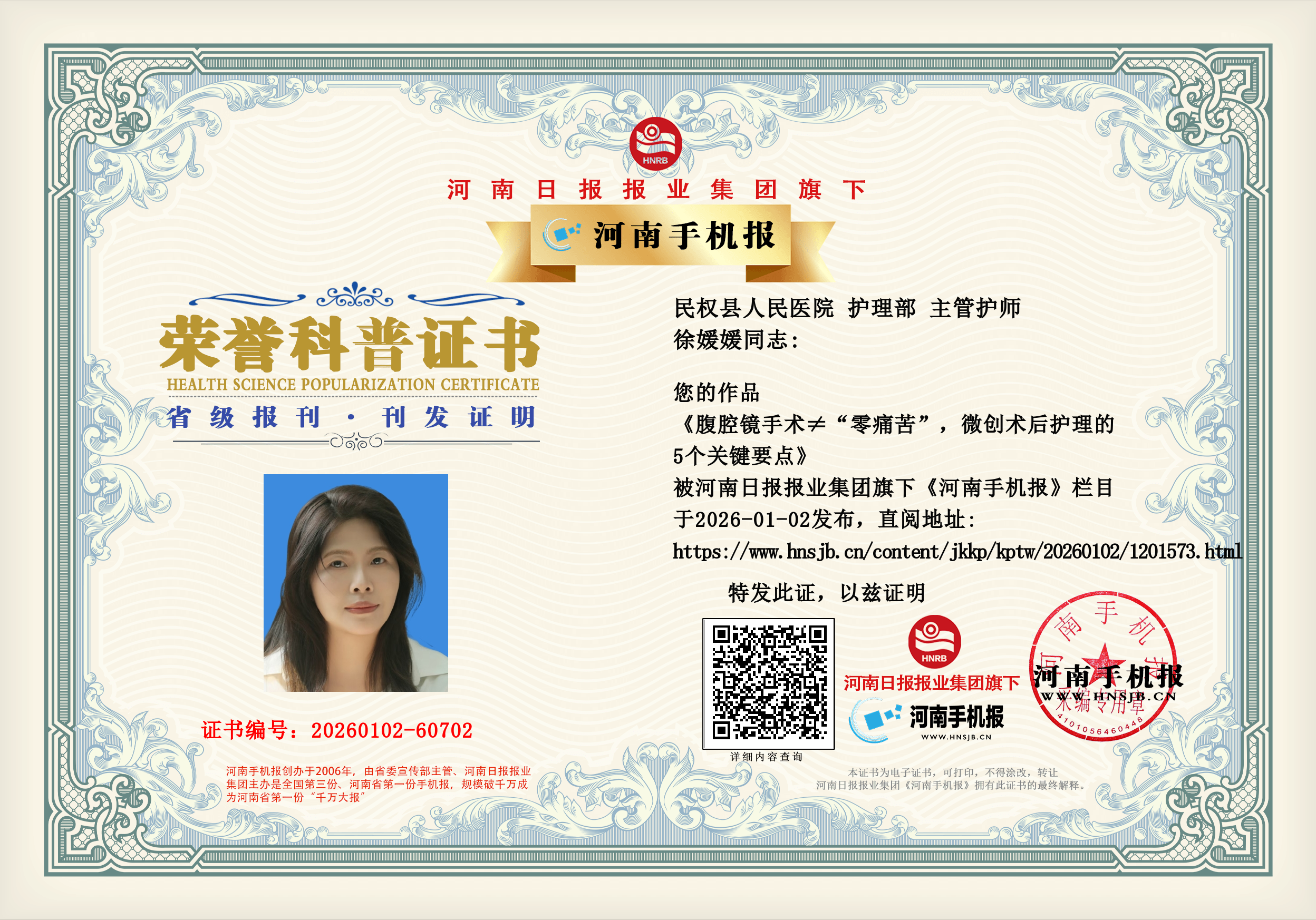 特别声明:本文内容由河南手机报投稿作者发布,仅代表作者个人观点,河南手机报仅提供发布平台。如内容涉及侵权或其他问题,请联系删除!本栏目工作人员不会主动以任何形式联系作者,请各位作者提高警惕、注意甄别,若遇可疑人员请及时拉黑并向我们反馈,避免财产损失。