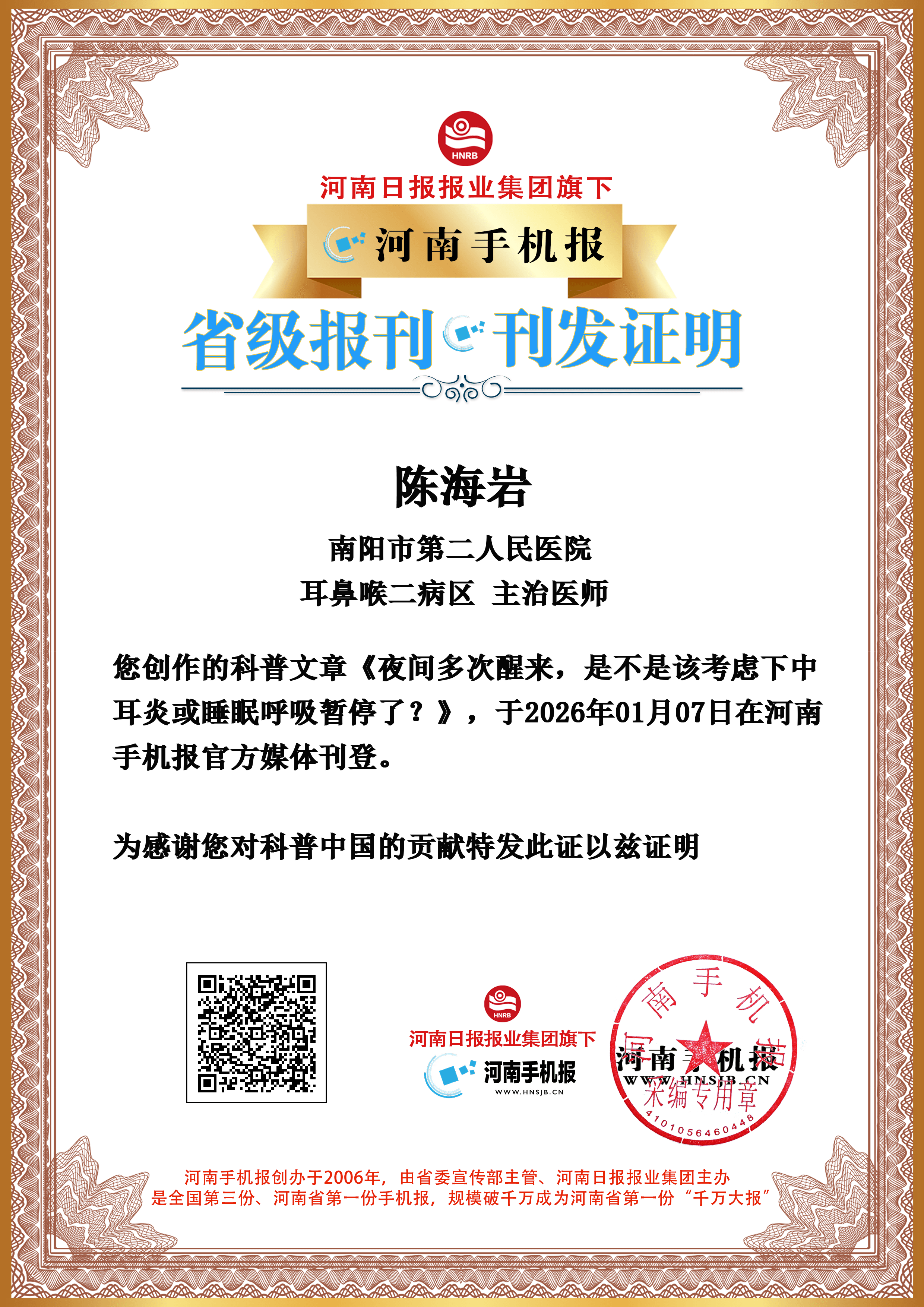 特别声明:本文内容由河南手机报投稿作者发布,仅代表作者个人观点,河南手机报仅提供发布平台。如内容涉及侵权或其他问题,请联系删除!本栏目工作人员不会主动以任何形式联系作者,请各位作者提高警惕、注意甄别,若遇可疑人员请及时拉黑并向我们反馈,避免财产损失。