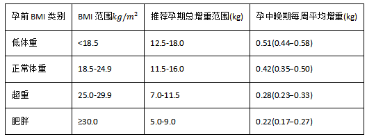 孕期体重增长建议指南