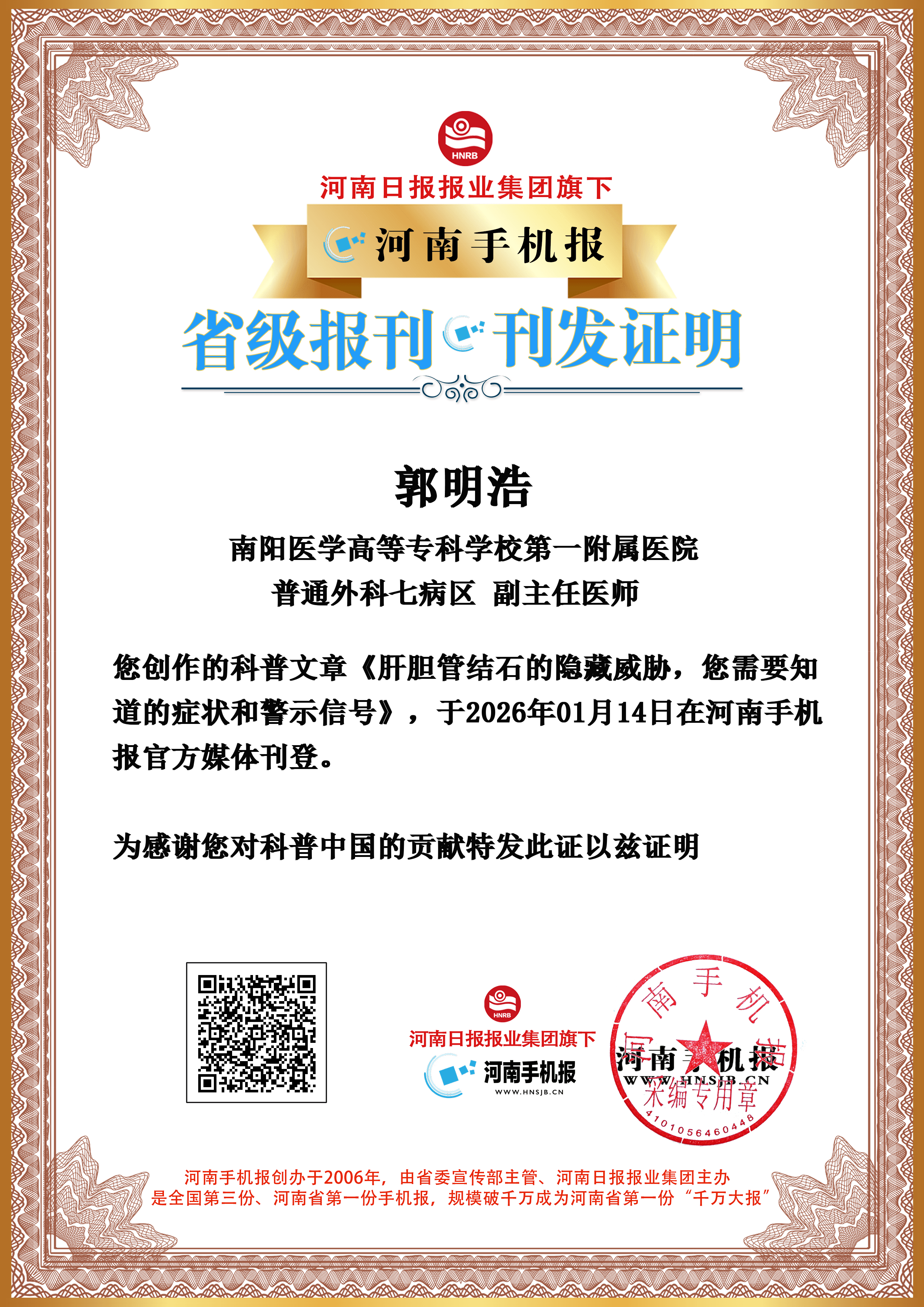 (郭明浩 南阳医学高等专科学校第一附属医院 普通外科七病区 副主任医师)
