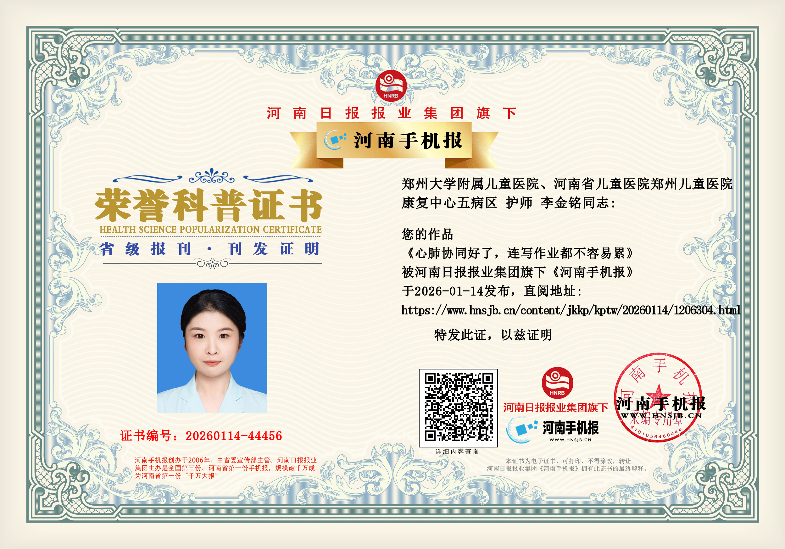 (李金铭 郑州大学附属儿童医院、河南省儿童医院郑州儿童医院 康复中心五病区 护师)