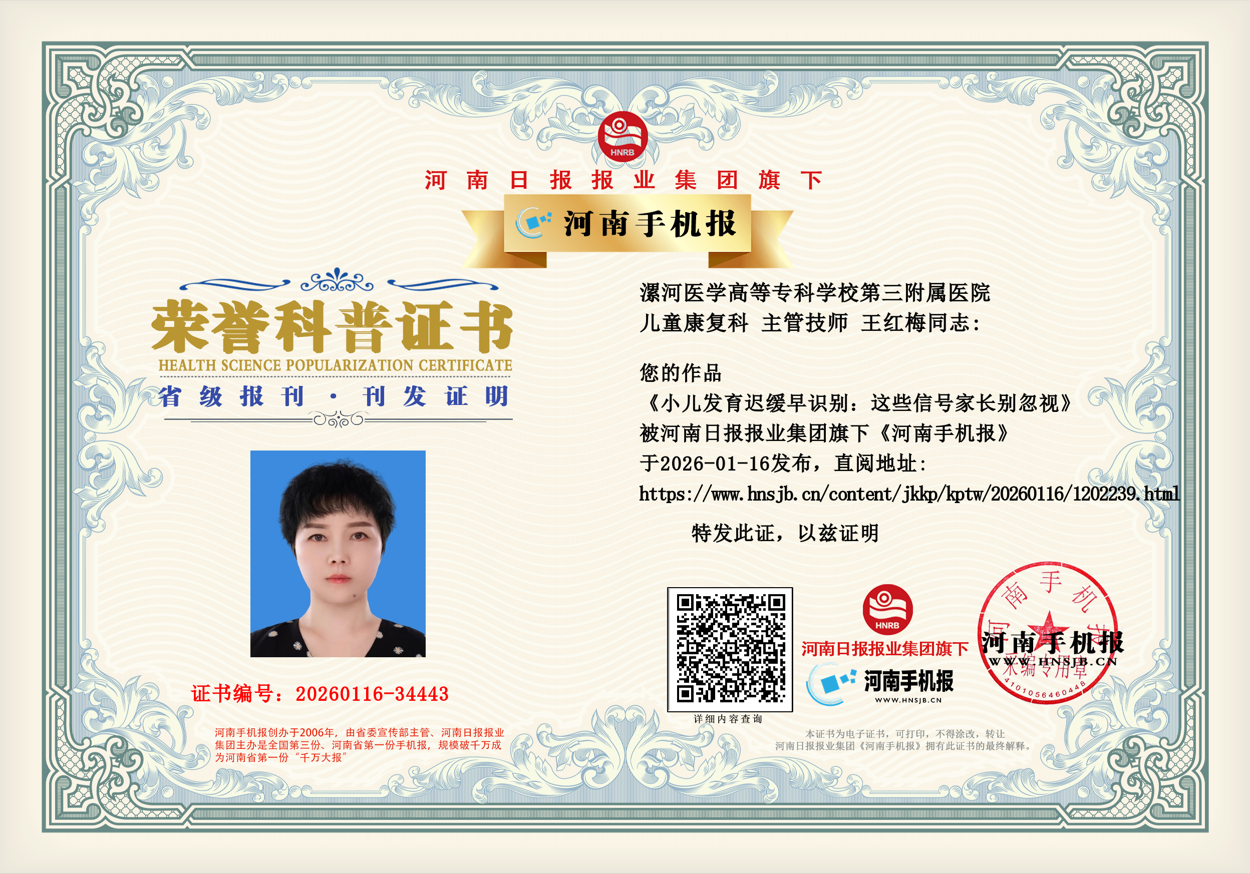 (王红梅 漯河医学高等专科学校第三附属医院 儿童康复科 主管技师)