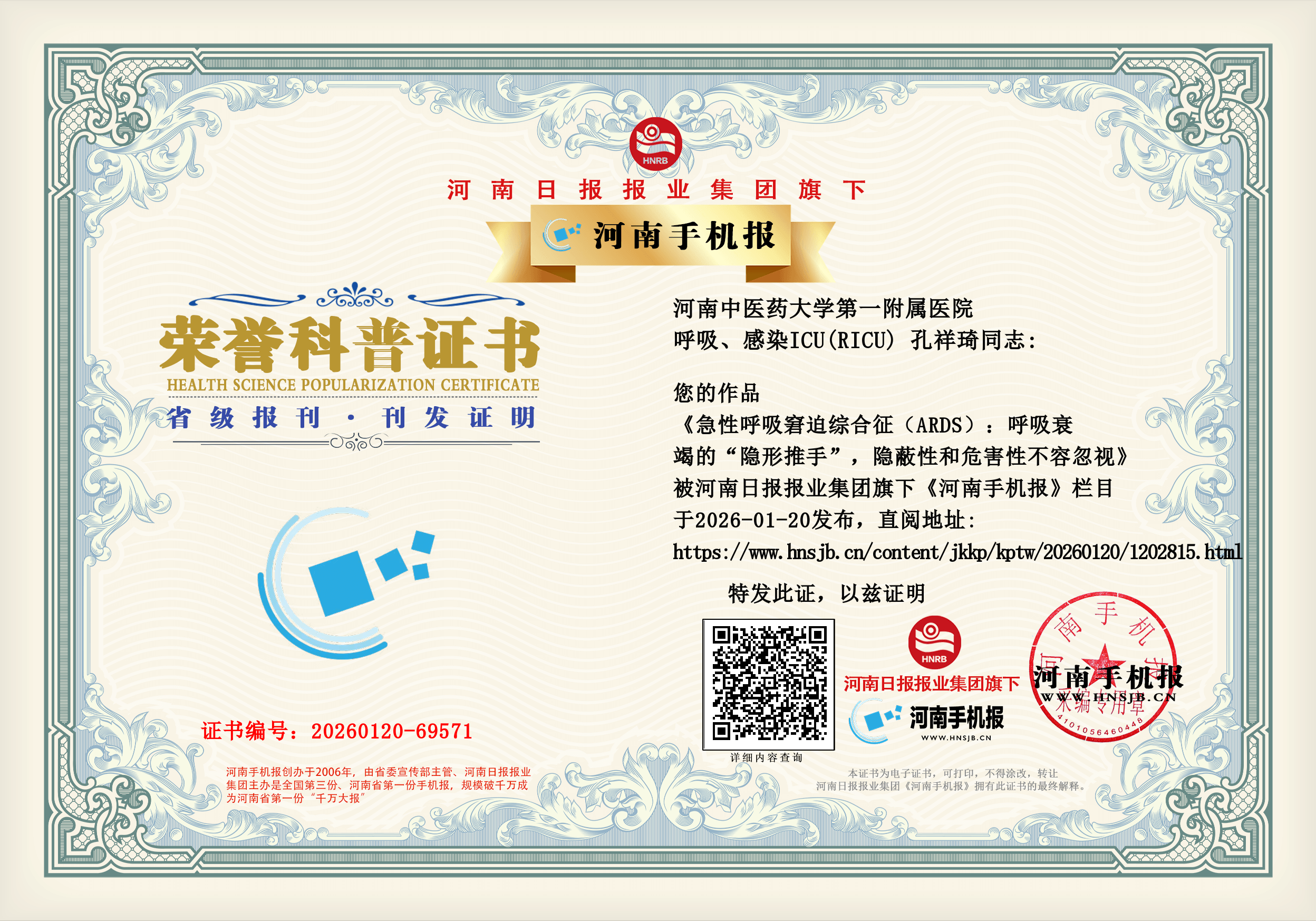 (孔祥琦 河南中医药大学第一附属医院 呼吸、感染ICU(RICU) 主管护师)