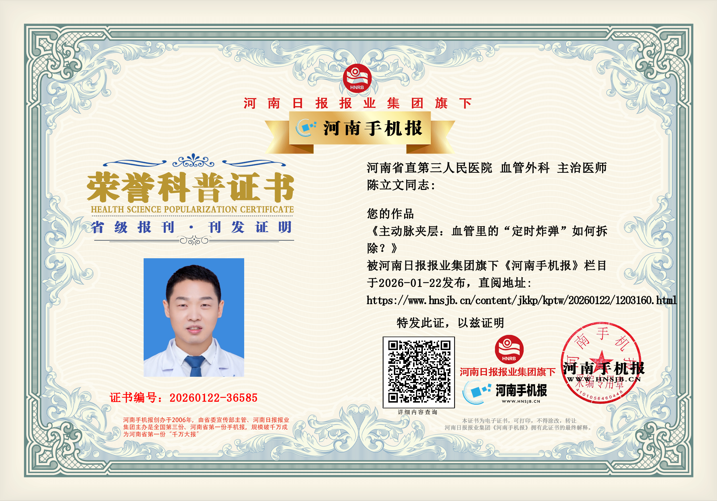 陈立文:主动脉夹层:血管里的“定时炸弹”如何拆除?