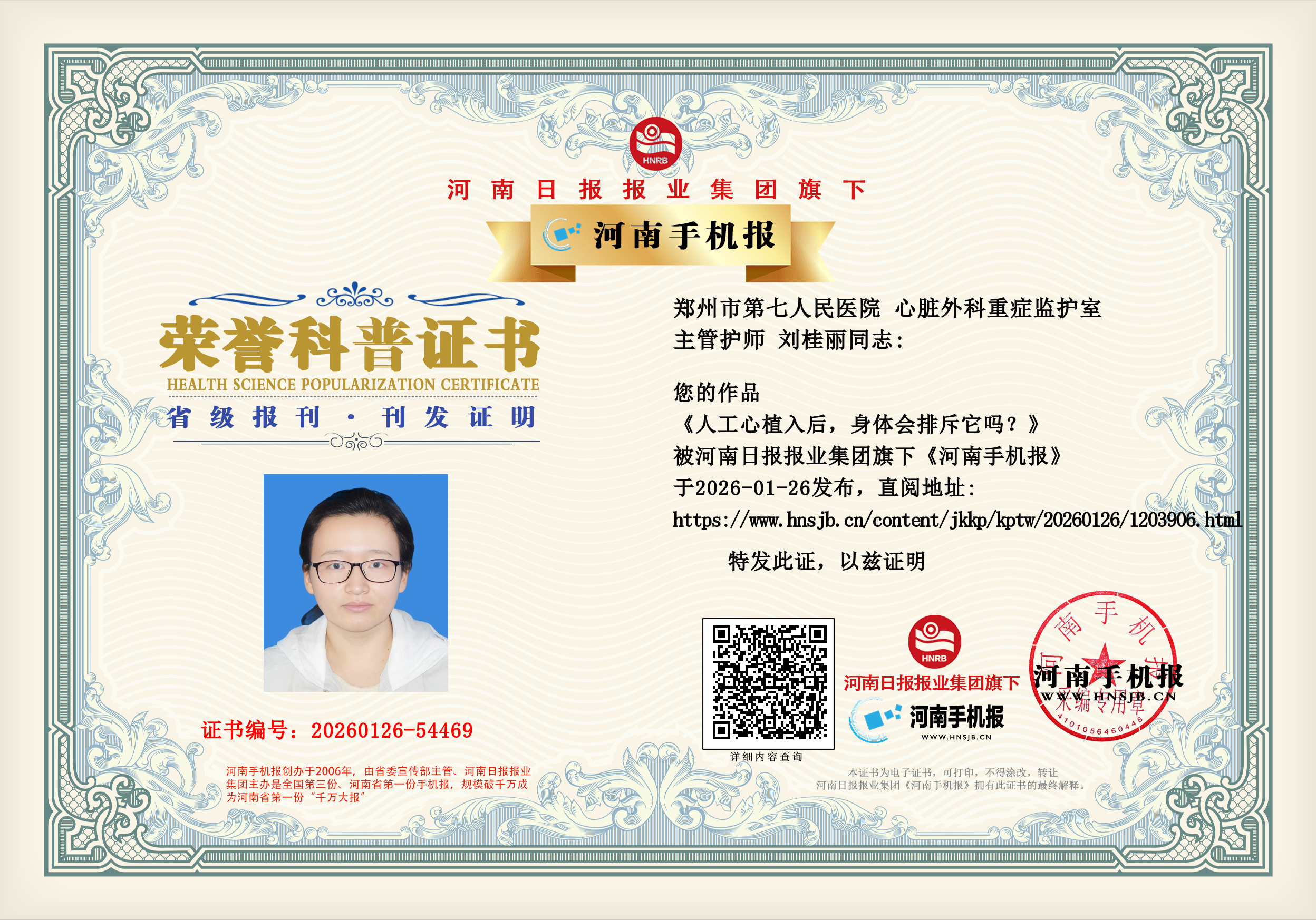 (刘桂丽 郑州市第七人民医院 心脏外科重症监护室 主管护师)