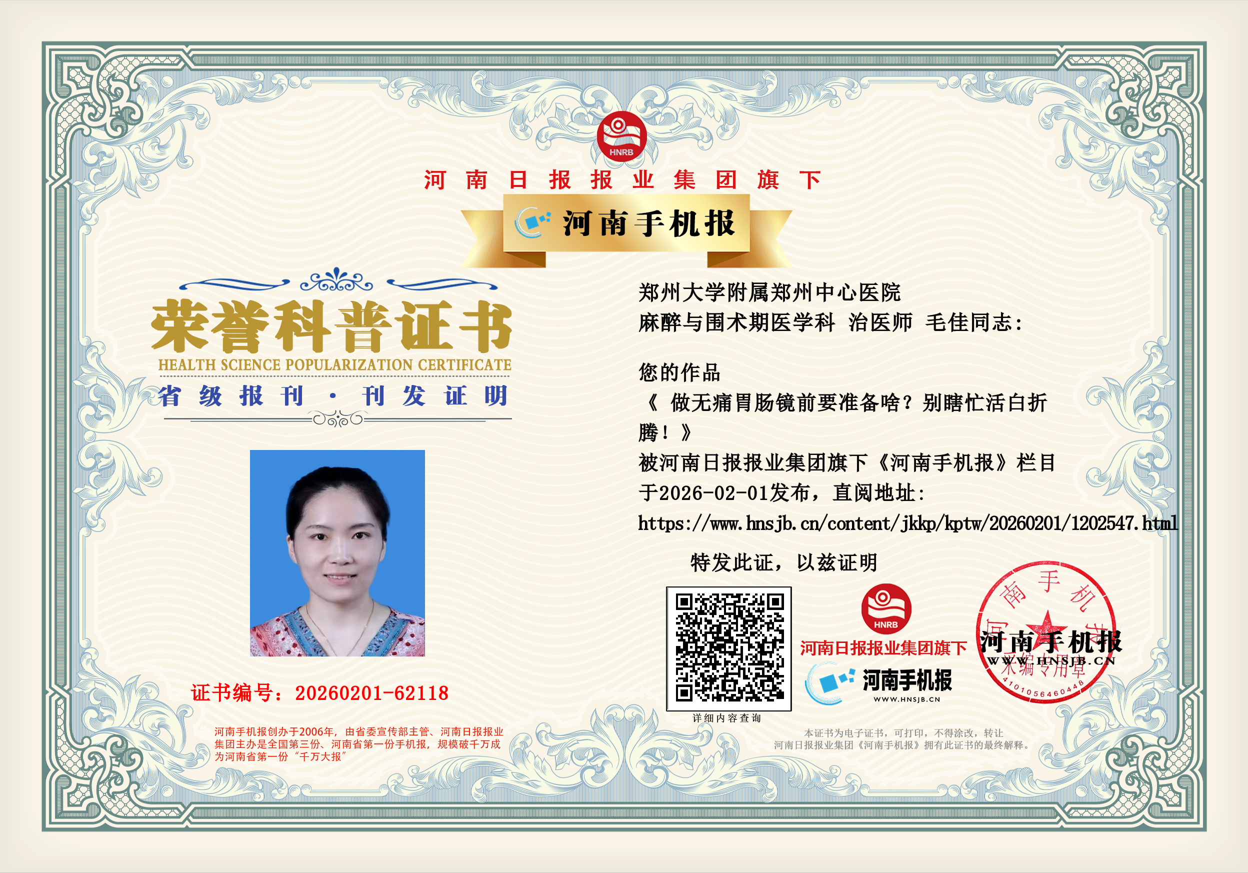 (毛佳 郑州大学附属郑州中心医院 麻醉与围术期医学科 治医师)