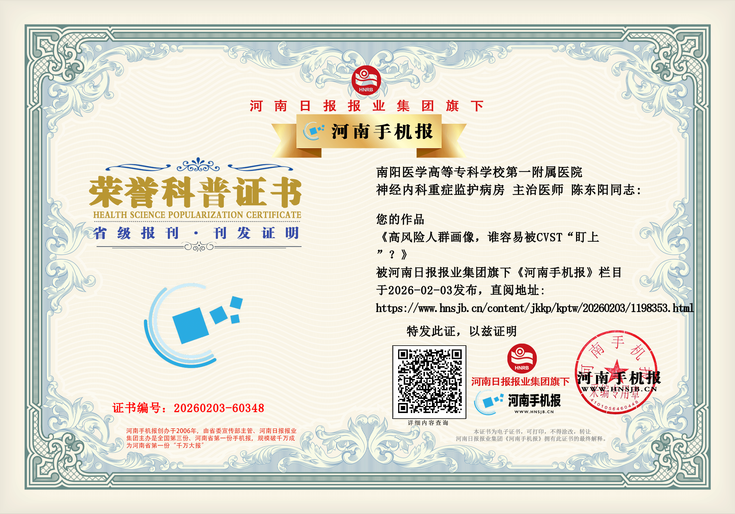 (陈东阳 南阳医学高等专科学校第一附属医院 神经内科重症监护病房 主治医师)
