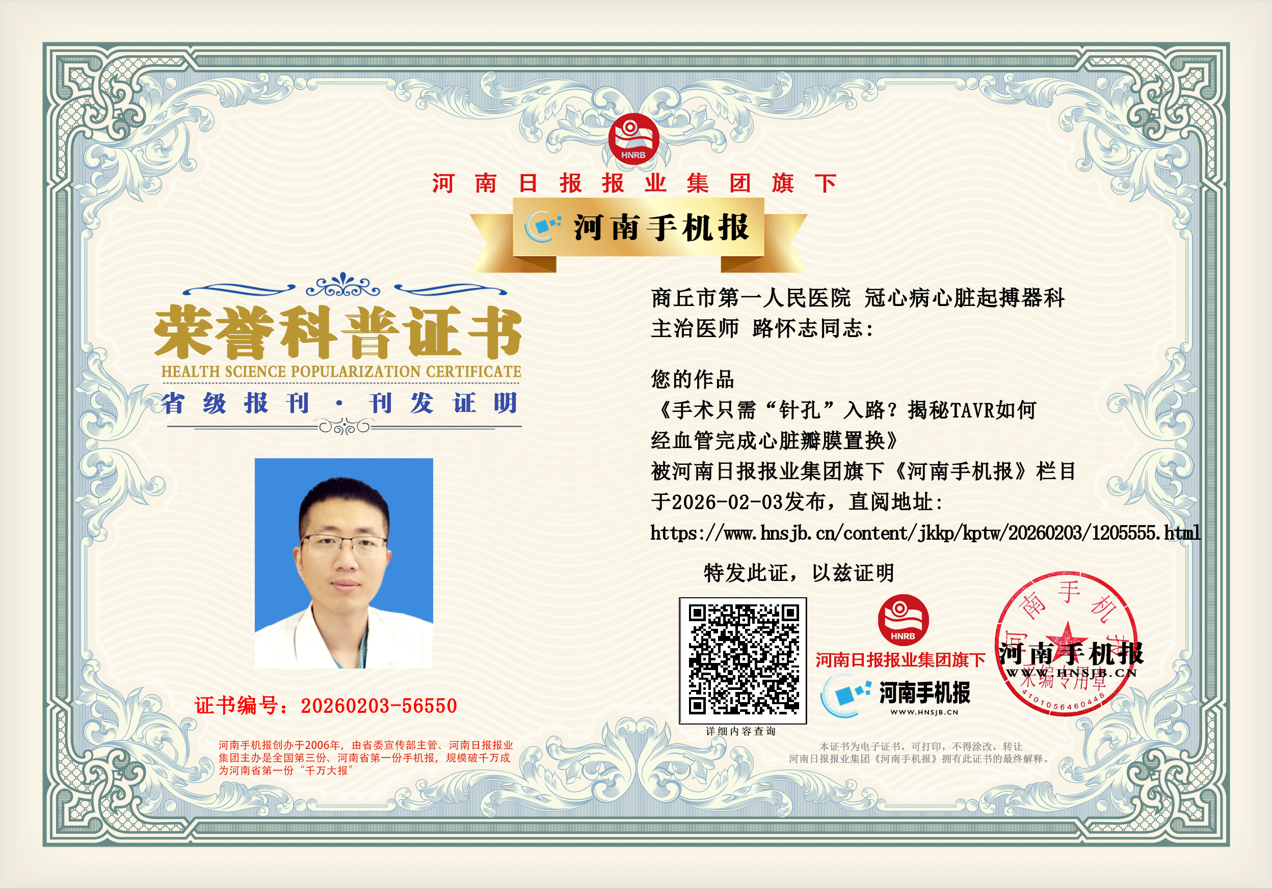 (路怀志 商丘市第一人民医院 冠心病心脏起搏器科 主治医师)