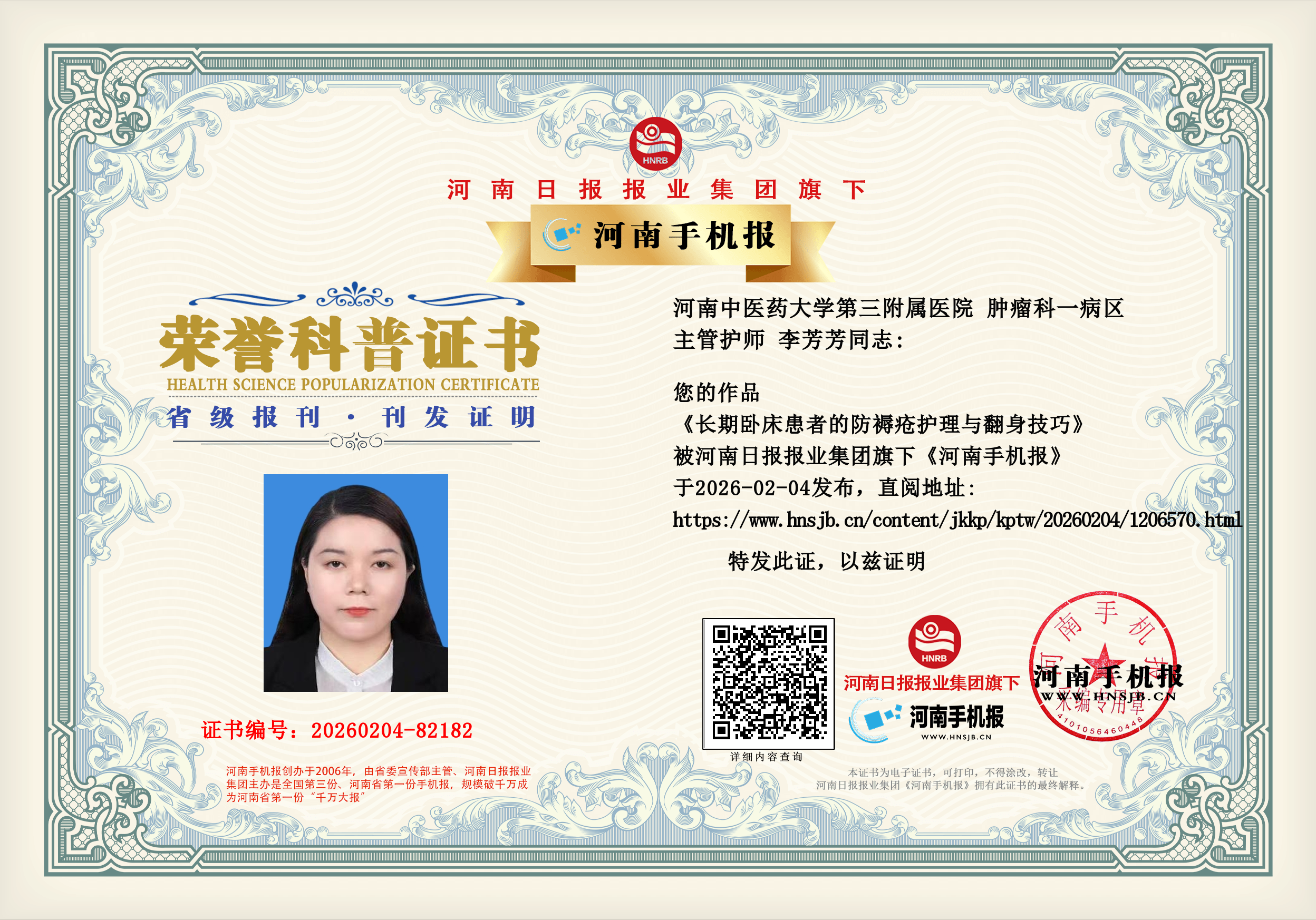 (李芳芳 河南中医药大学第三附属医院 肿瘤科一病区 主管护师)