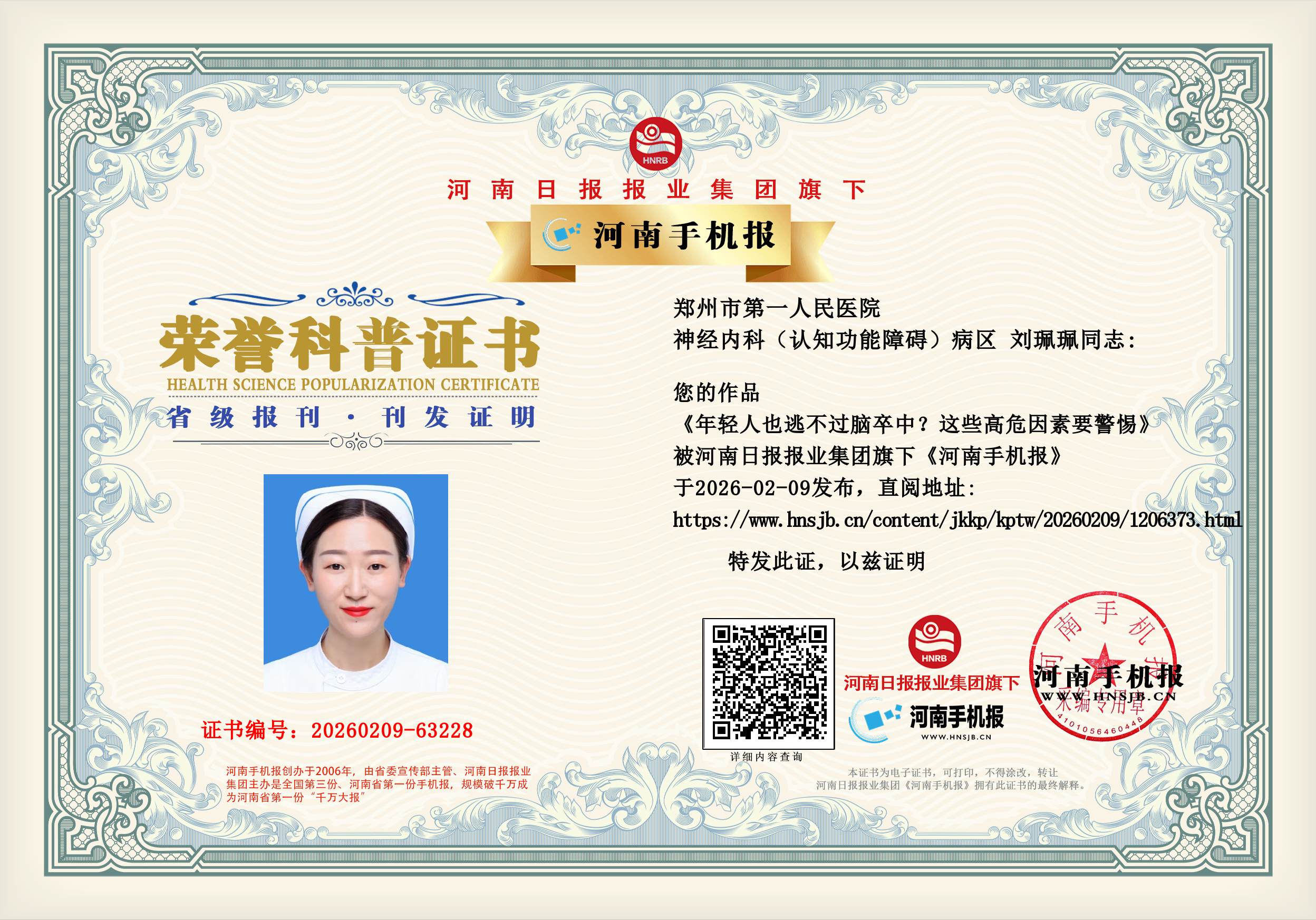 (刘珮珮 郑州市第一人民医院 神经内科(认知功能障碍)病区 主管护师)