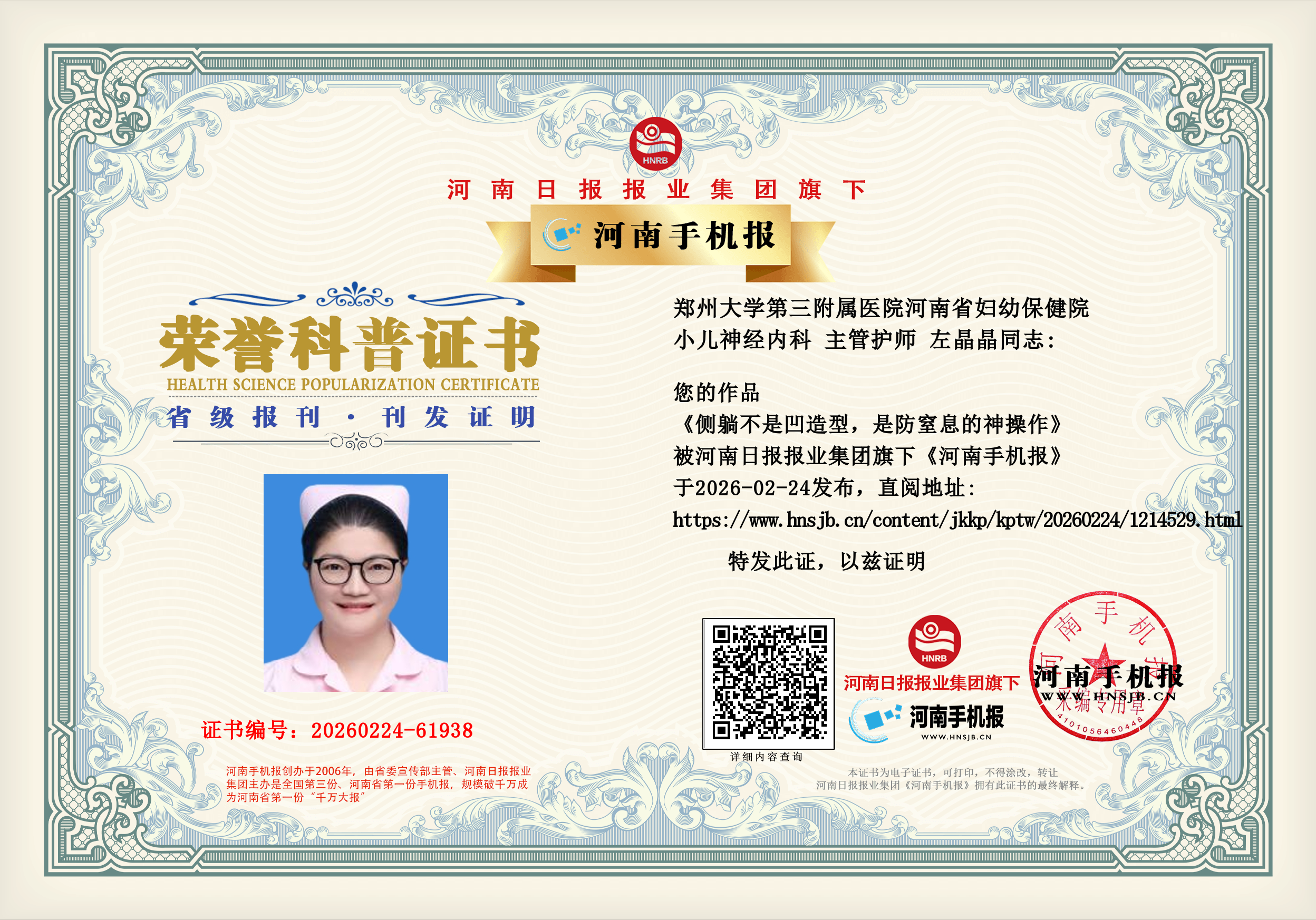 (左晶晶 郑州大学第三附属医院河南省妇幼保健院 小儿神经内科 主管护师)