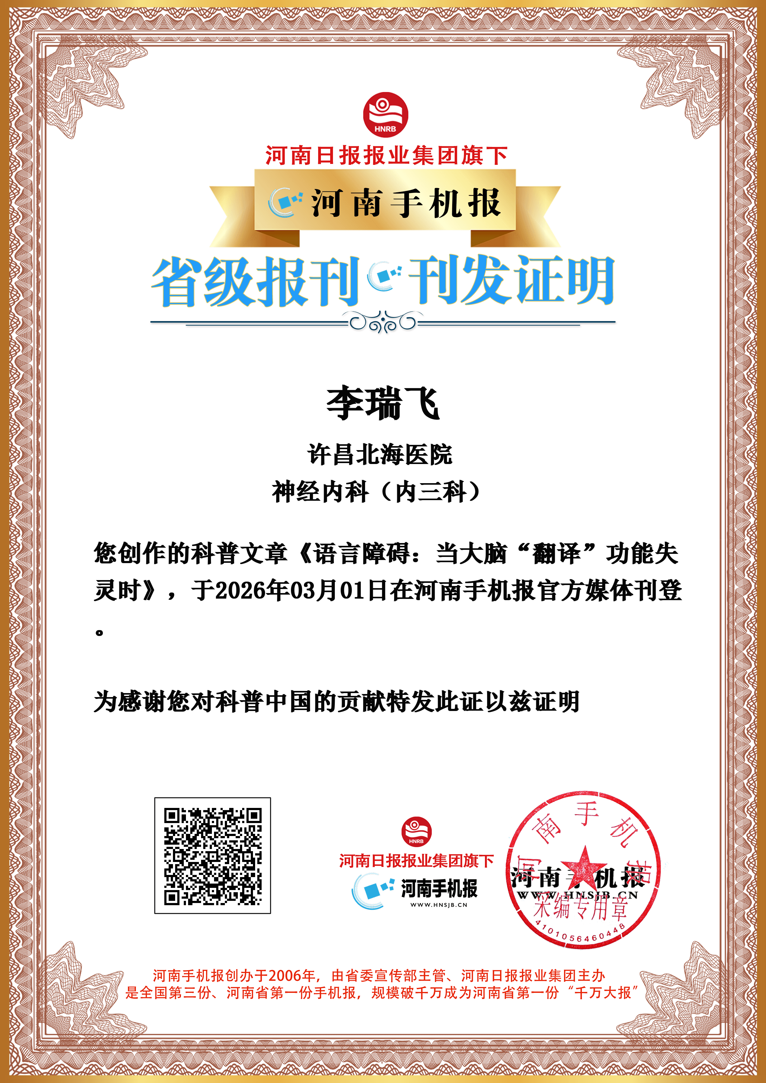 特别声明:本文内容由河南手机报投稿作者发布,仅代表作者个人观点,河南手机报仅提供发布平台。如内容涉及侵权或其他问题,请联系删除!本栏目工作人员不会主动以任何形式联系作者,请各位作者提高警惕、注意甄别,若遇可疑人员请及时拉黑并向我们反馈,避免财产损失。