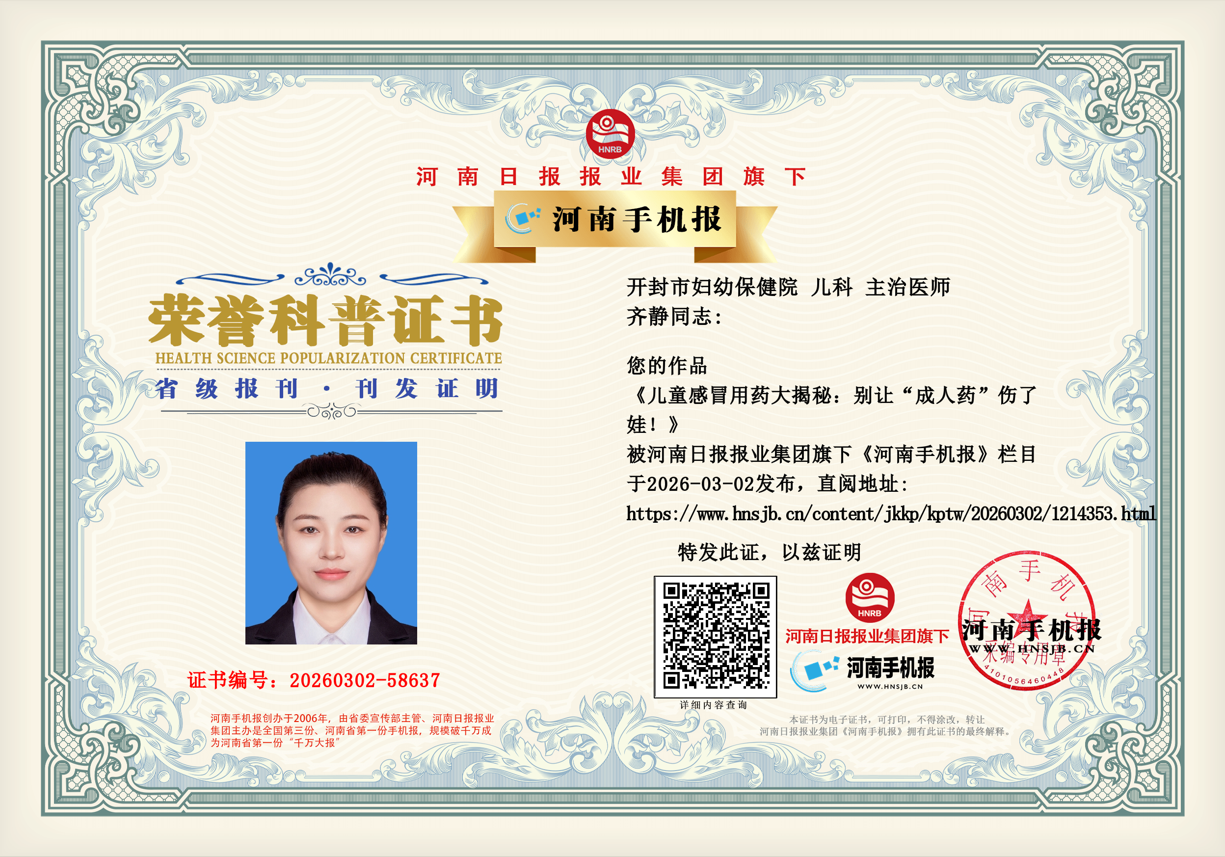 齐静:儿童感冒用药大揭秘:别让“成人药”伤了娃!