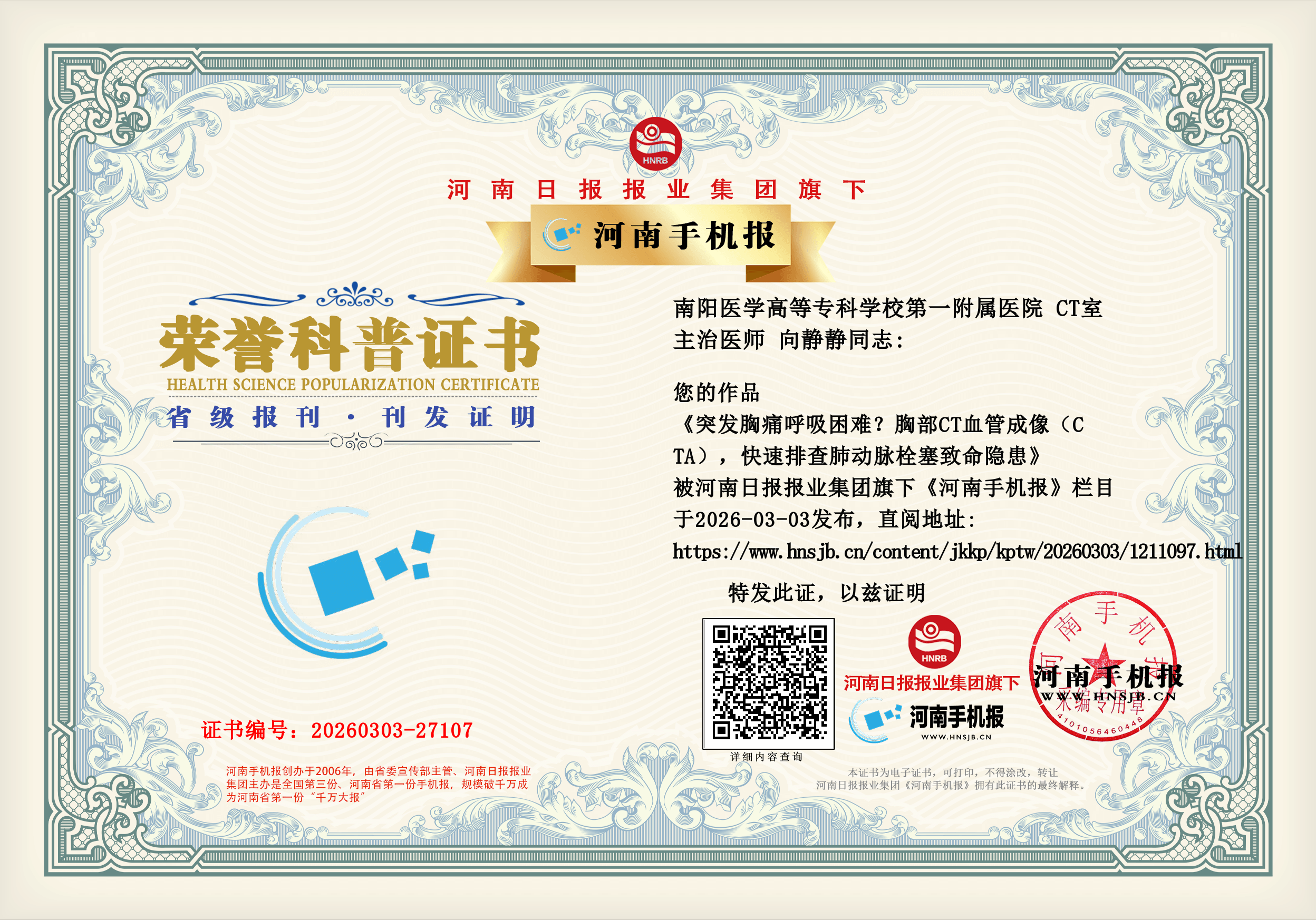 (向静静 南阳医学高等专科学校第一附属医院 CT室 主治医师)