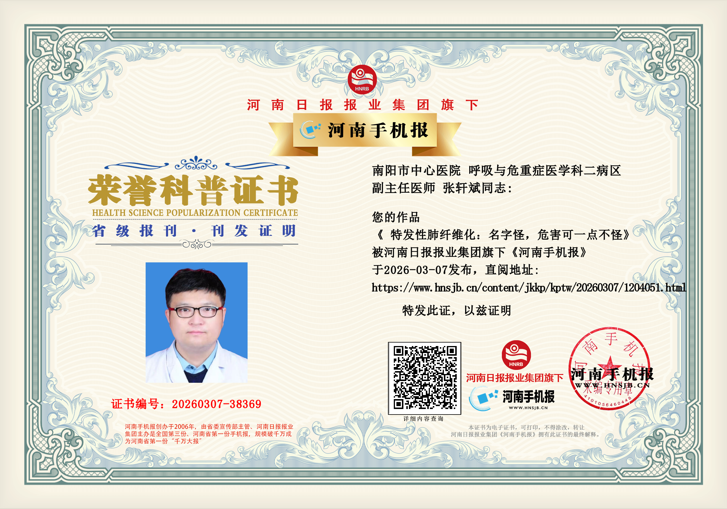 (张轩斌 南阳市中心医院 呼吸与危重症医学科二病区 副主任医师)