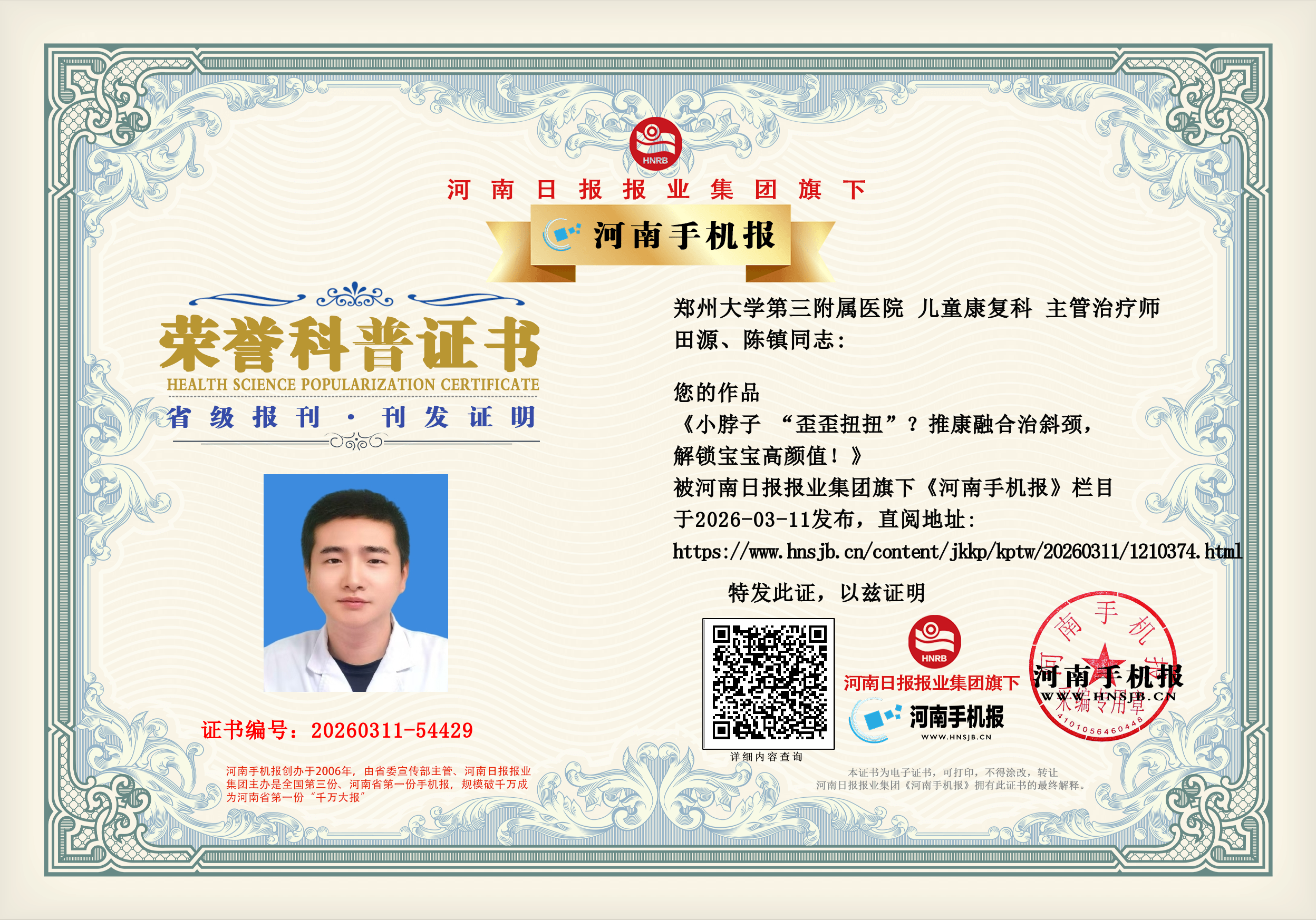 (田源、陈镇 郑州大学第三附属医院 儿童康复科 主管治疗师)