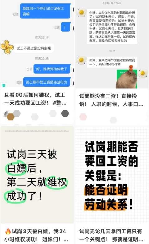 记者在社交平台发现,不少劳动者通过领导留言板、全国根治欠薪线索反映平台等渠道反映“无薪试岗”问题后,经有关部门协调,最终拿回工资或一定金额的试岗补贴。